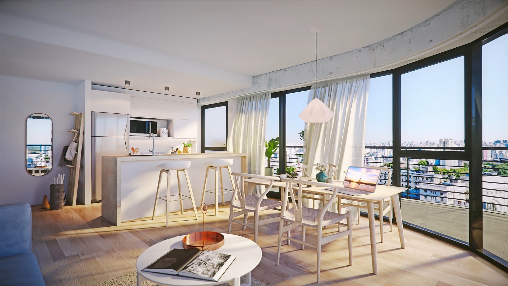 El proyecto cuenta con 18 pisos. En el 2do piso están las primeras unidades funcionales y los amenities. Del Piso 2 al 9 hay 1, 2 y 3 amb. Del piso 10 al 15 unidades de 2 y 3 ambientes. Del piso 16 al 18 unidades de 3 y 4 ambientes.