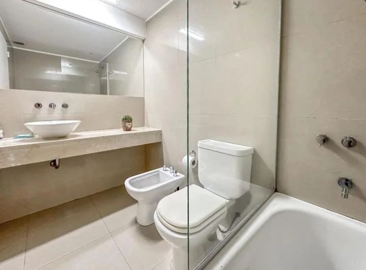 – Baño completo, con mesada de mármol, pisos y paredes de porcelanato