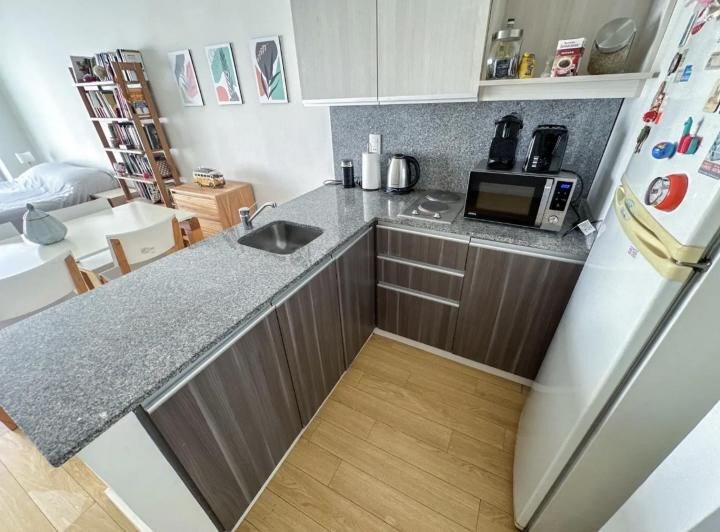 – Cocina con mesada de mármol / barra desayunadora, anafe eléctrico, muebles de cocina nuevos
