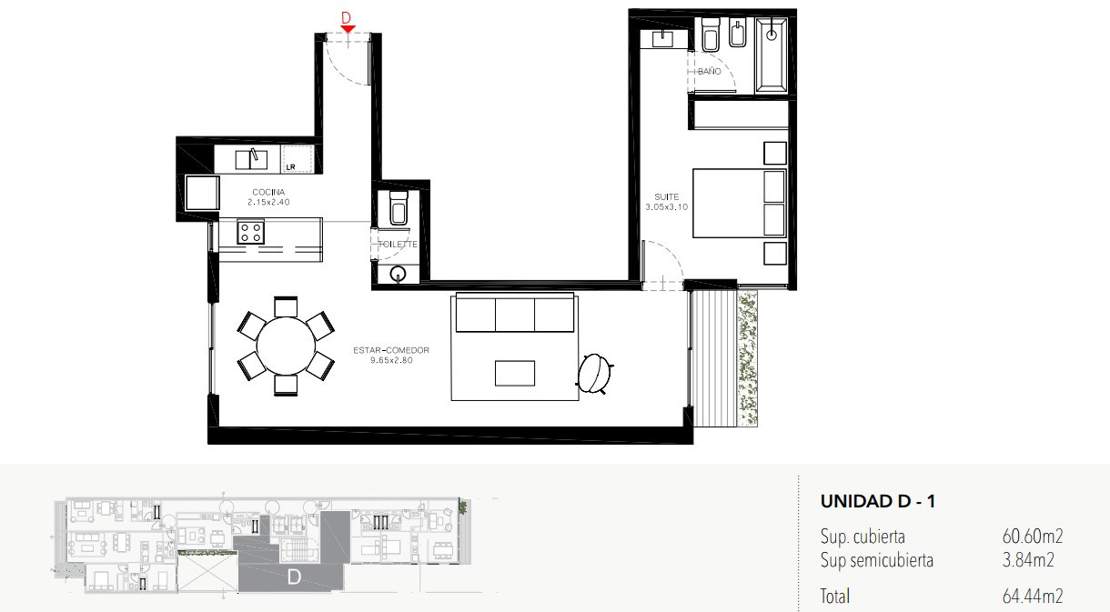 Superficie total 64.00 m2