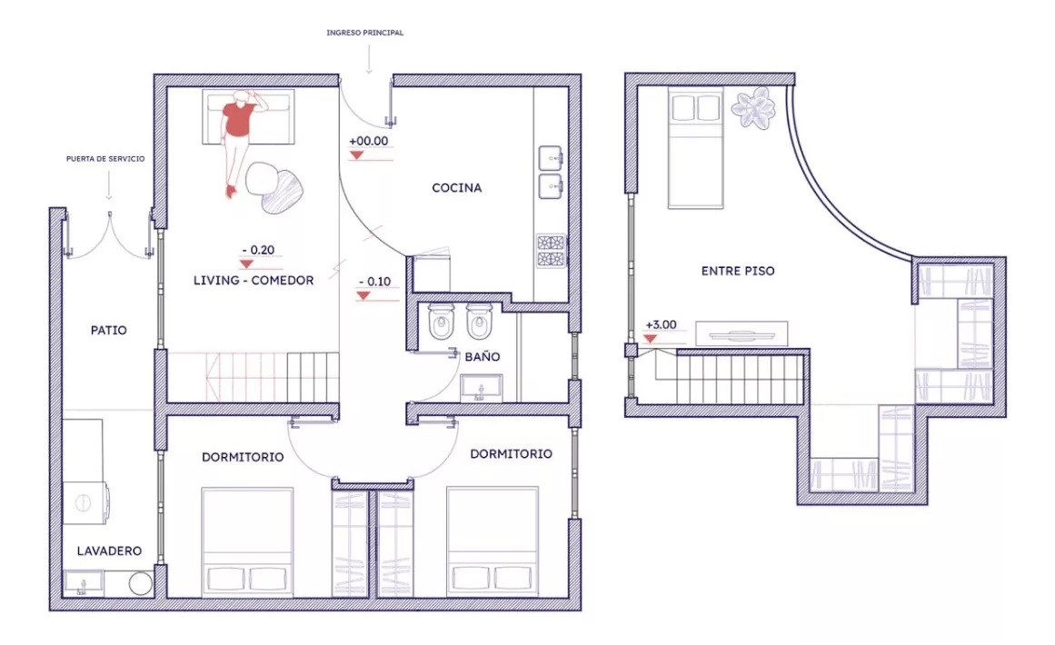 •Total 66,5 m² (Planta baja + entrepiso + Patio)