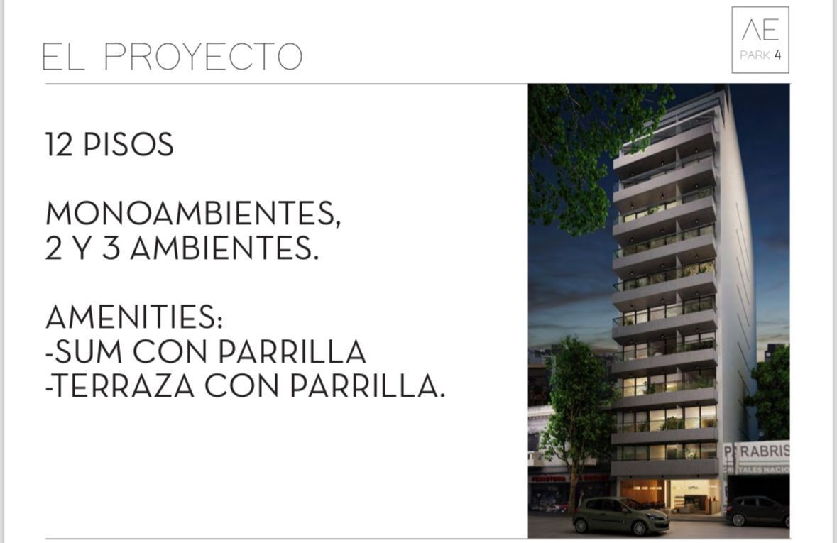 Te presentamos una oportunidad única para invertir en un exclusivo monoambiente en el edificio de 12 pisos AE Park 4, actualmente en construcción y con entrega estimada en diciembre de 2025 aproximadamente.