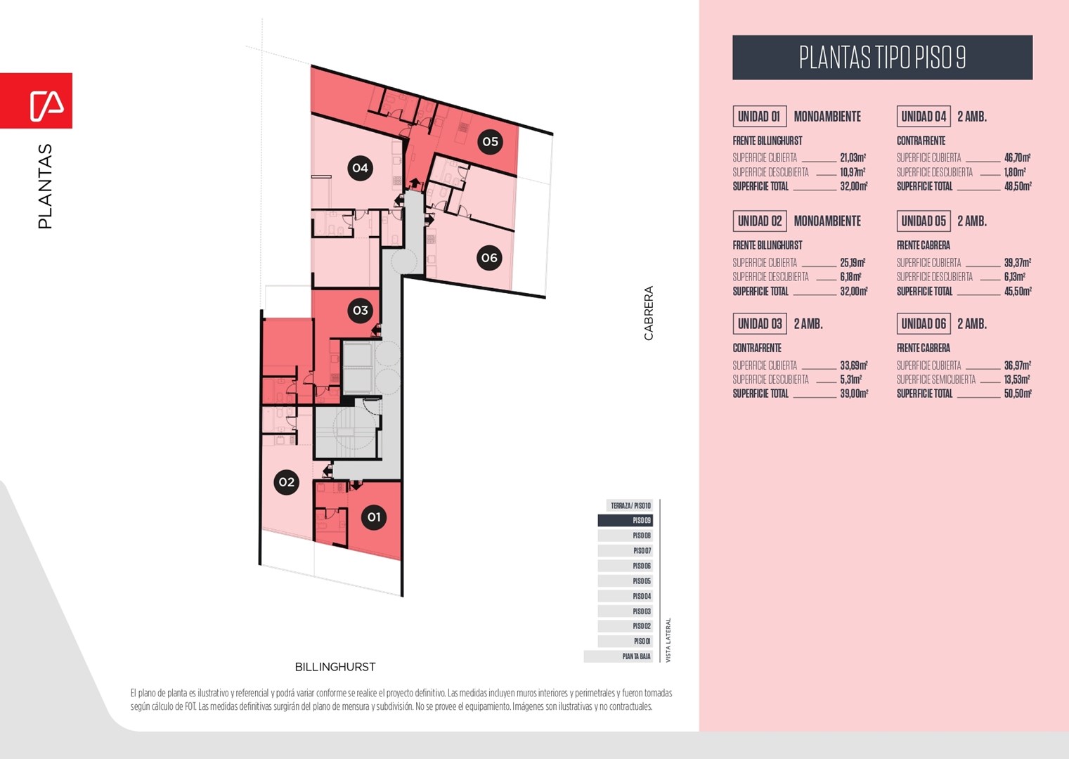 5º piso, monoambiente de 35,5 mts2 totales, 31,32 mts2 cub y 4,18 mts2 semicub