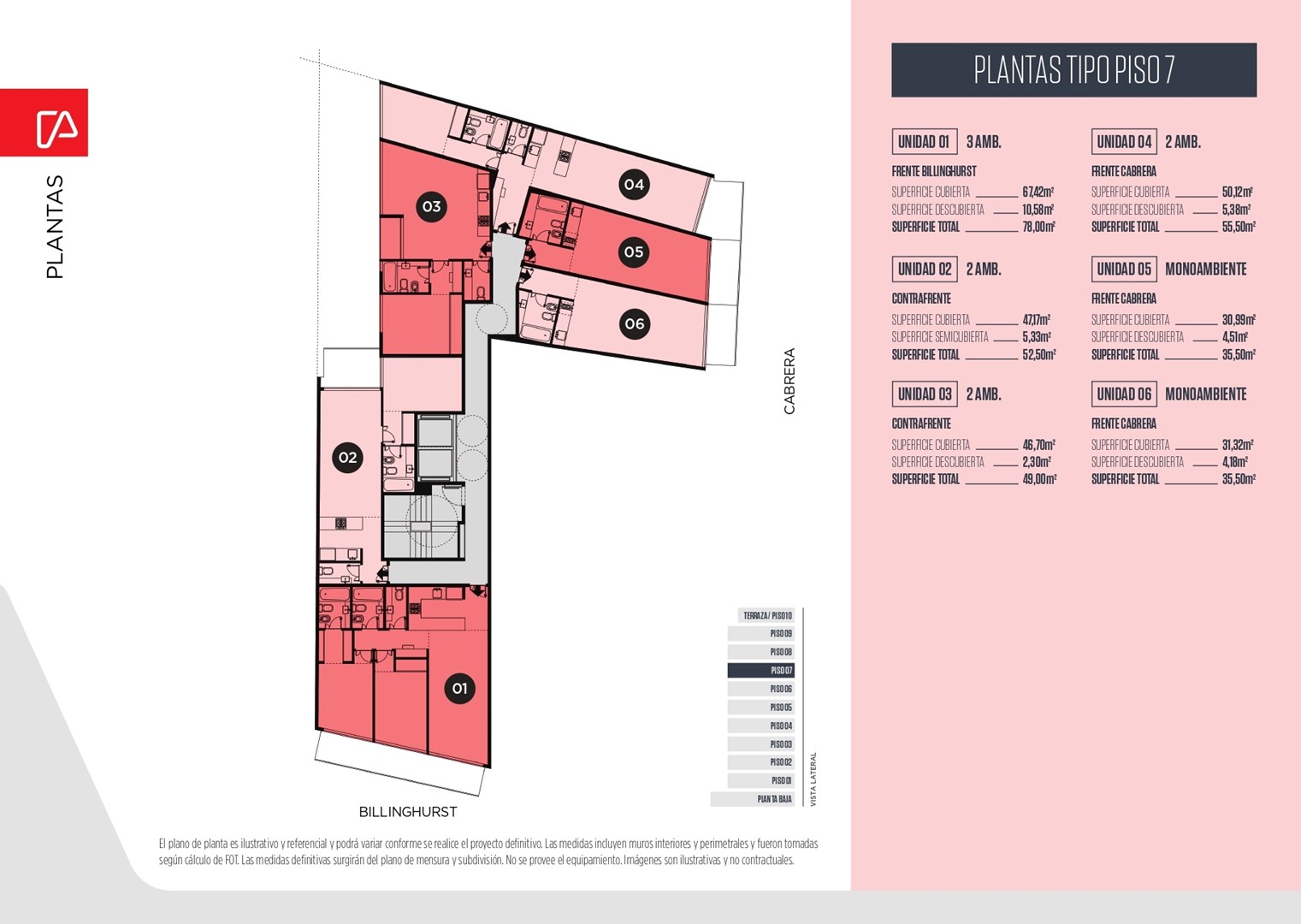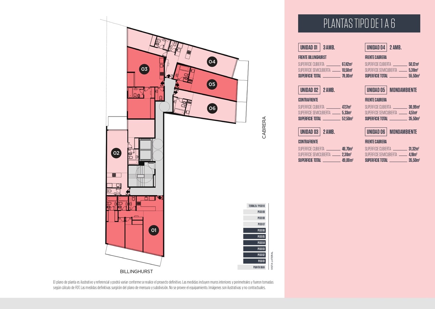 6º piso, dos ambientes de 55,5 mts2 totales, 50,12 mts2 cub 4,38 mts2 semicub