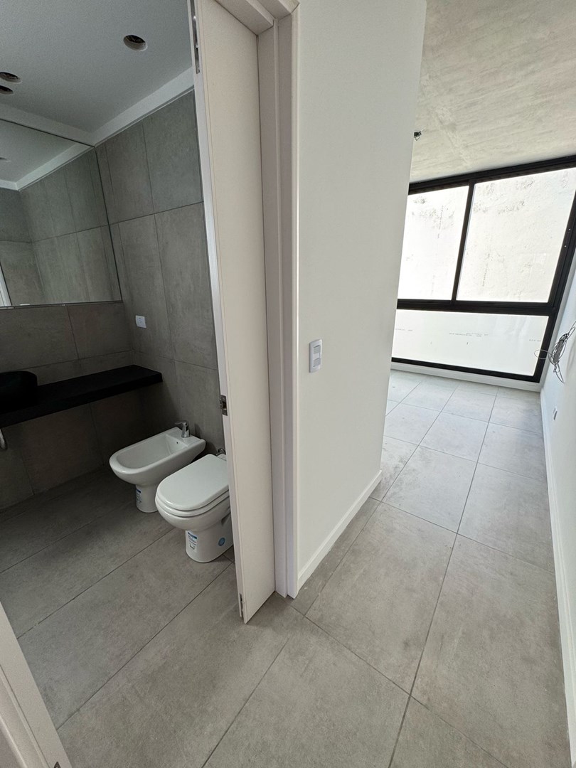 Amplio 2 ambientes con dos baños: uno en suite y un toilette de recepción.