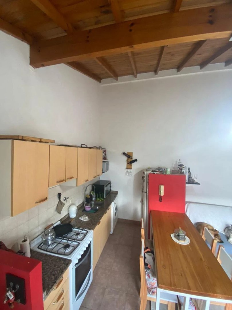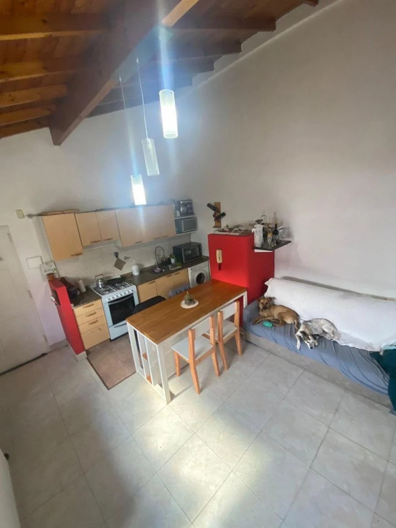 A la entrada nos encontramos con la cocina integrada al living, luego se encuentra el baño con bañadera, el dormitorio cuenta con gran placard empotrado con una baulera abierta sobre el mismo, amplio espacio de guardado.