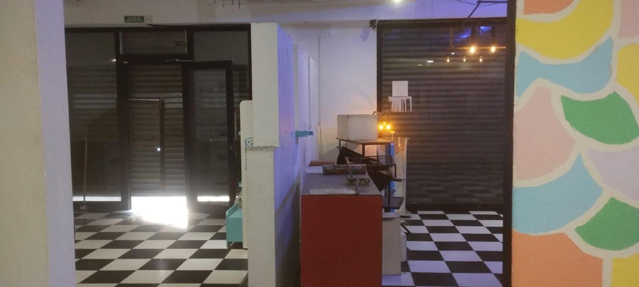 Doble frente de vidriera y persiana ciega. Su último uso fue para una conocida cadena de peluquerías