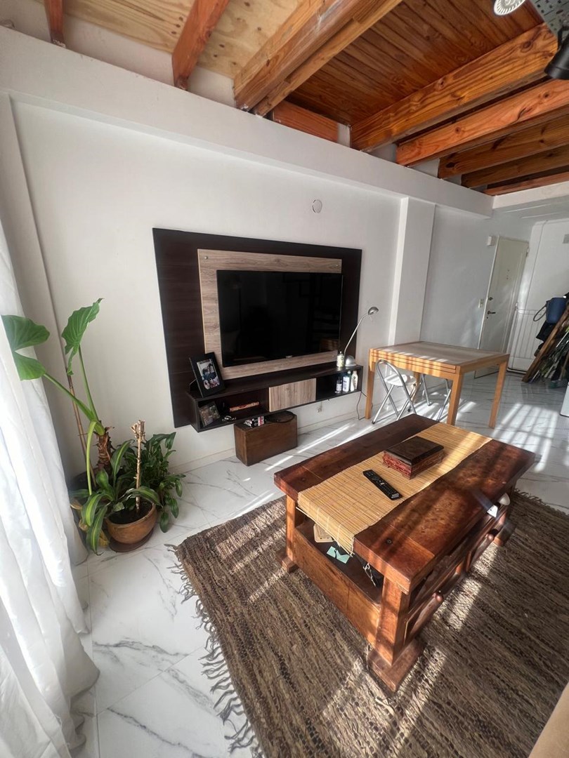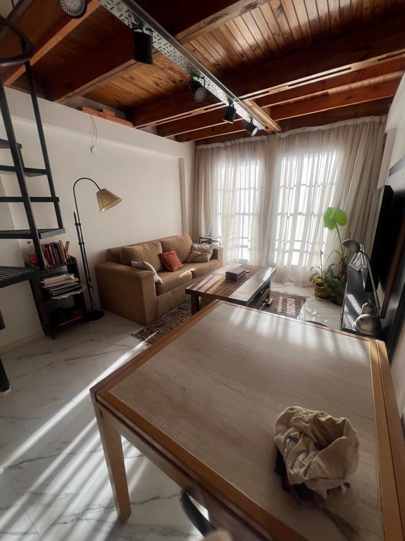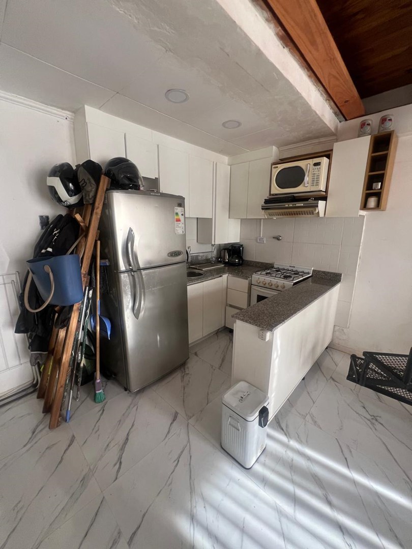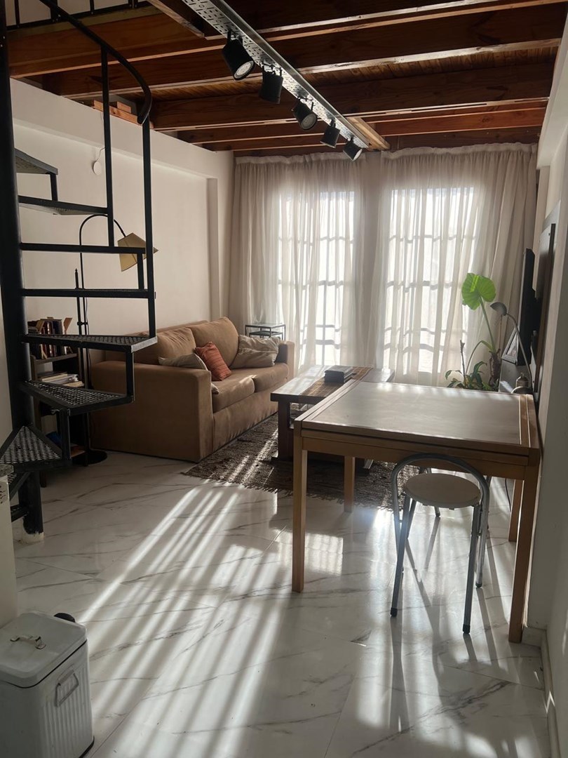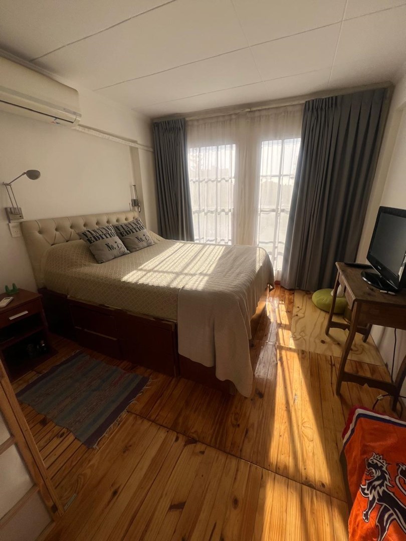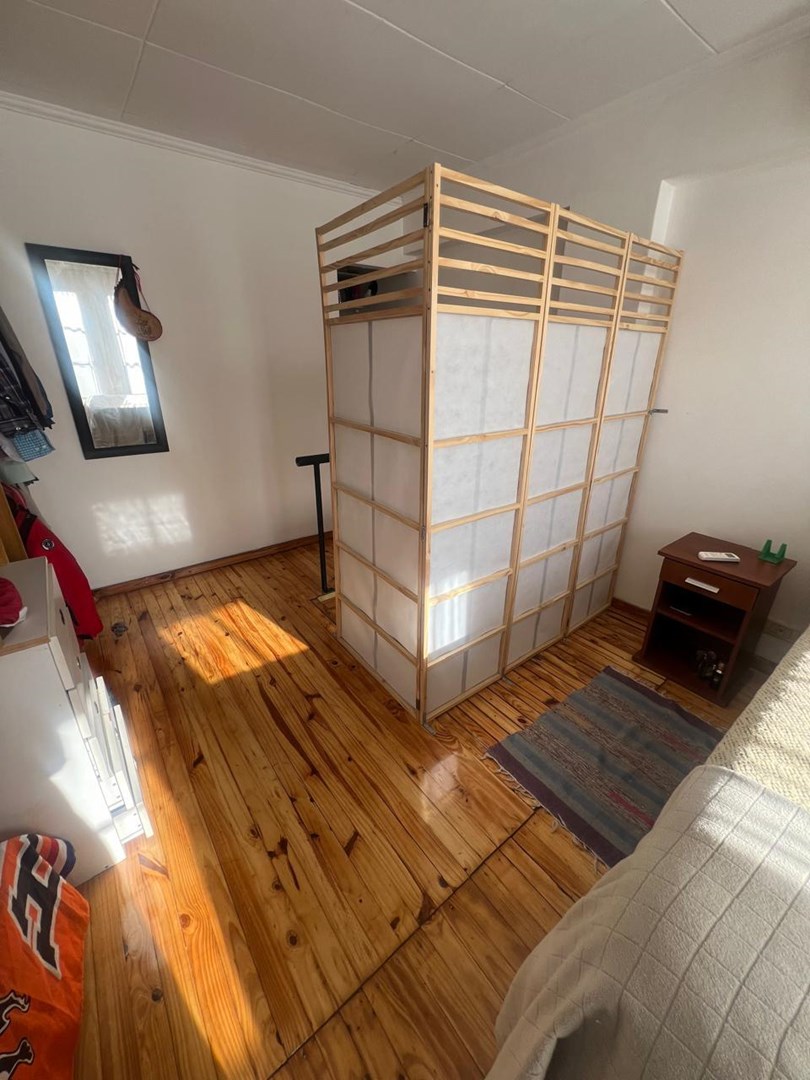 Arriba, habitación con pisos de madera plastificada, baño y lavadero. Todo el PH es ultra luminoso, ventilado y silencioso, orientado al contrafrente.