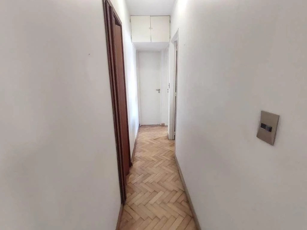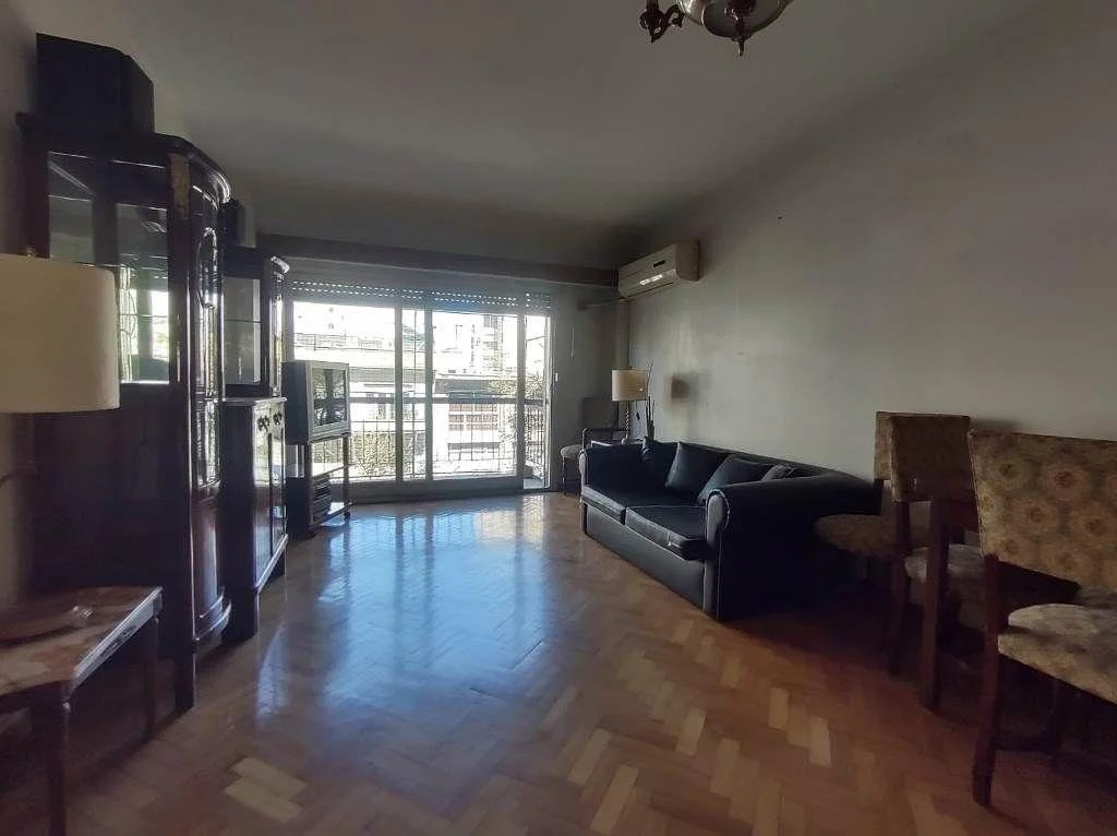 El ingreso es a un amplio living comedor con piso de parquet, equipado con aire acondicionado frío/calor y salida directa al balcón. Un hall de distribución conduce a dos dormitorios con placard, el principal con aire acondicionado solo frío.