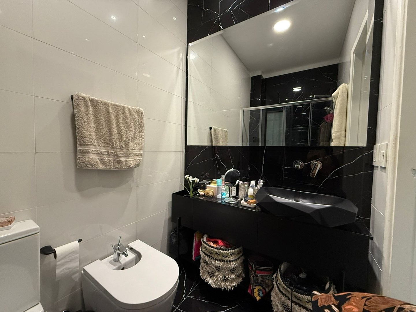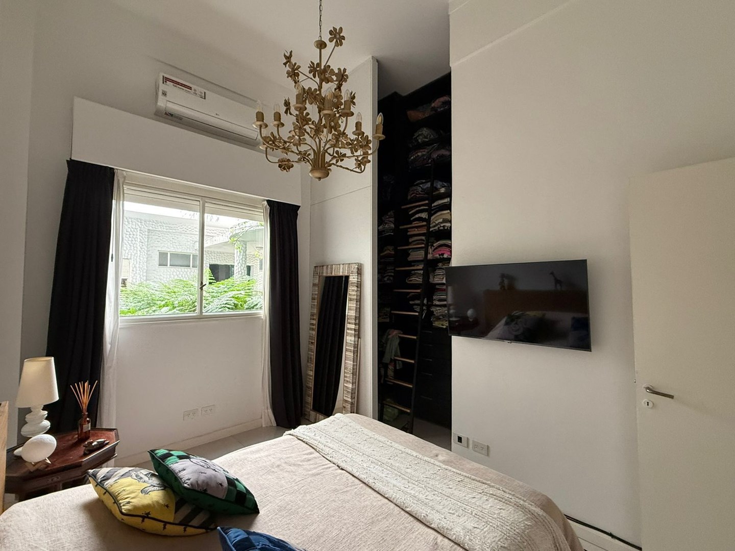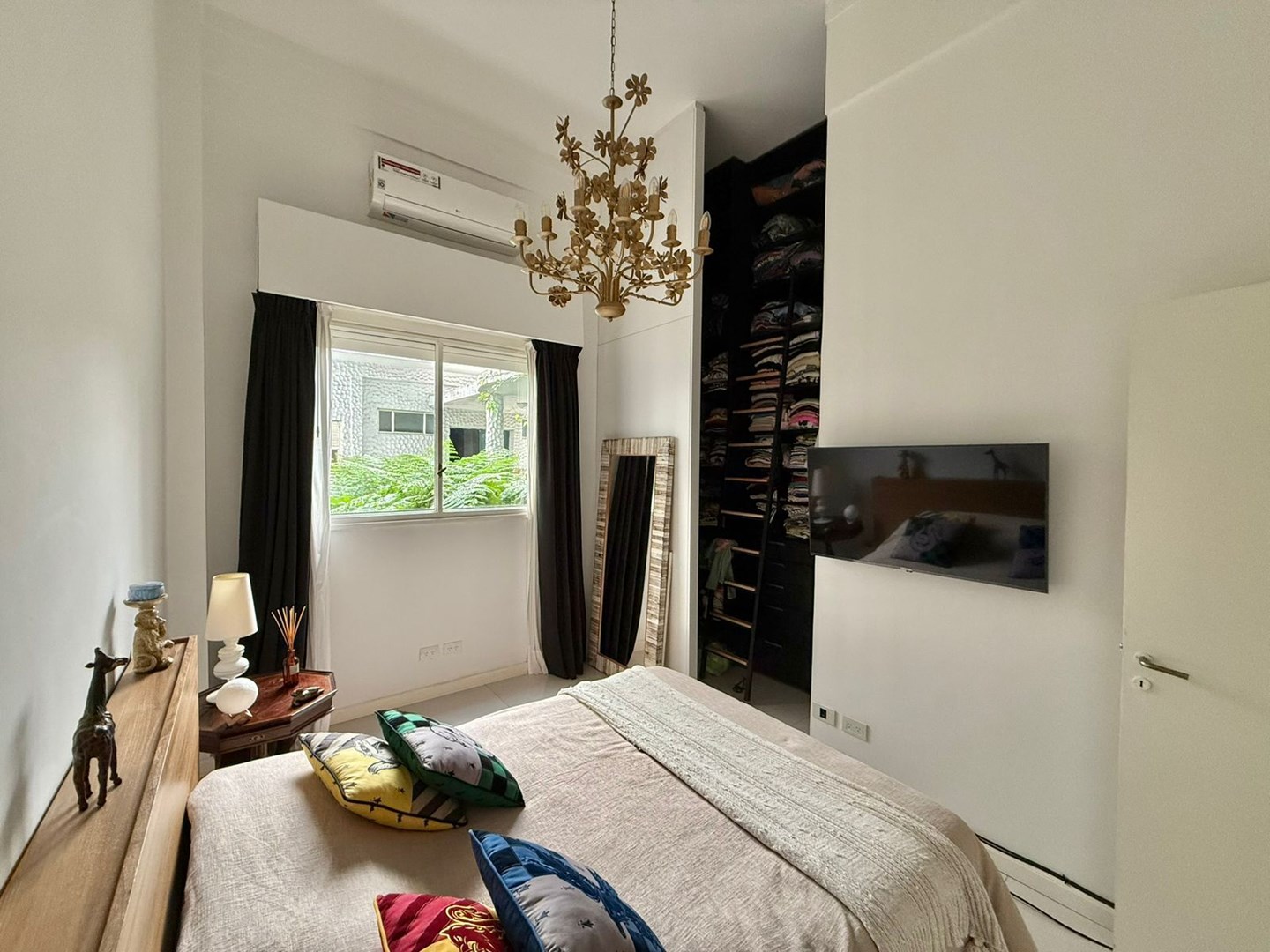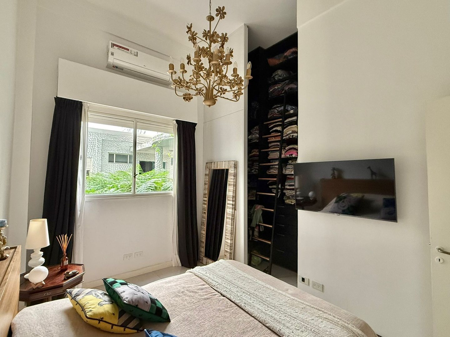 El dormitorio es amplio y cómodo, con vestidor hecho a medida de piso a techo y escalera interna, gracias a una destacada altura de techos de 4,25 metros. El baño principal es moderno y funcional, con griferías alemanas, sanitarios europeos Roca Inspira y ducha a estrenar. Además, cuenta con un toilette adicional con bacha de mármol a medida.