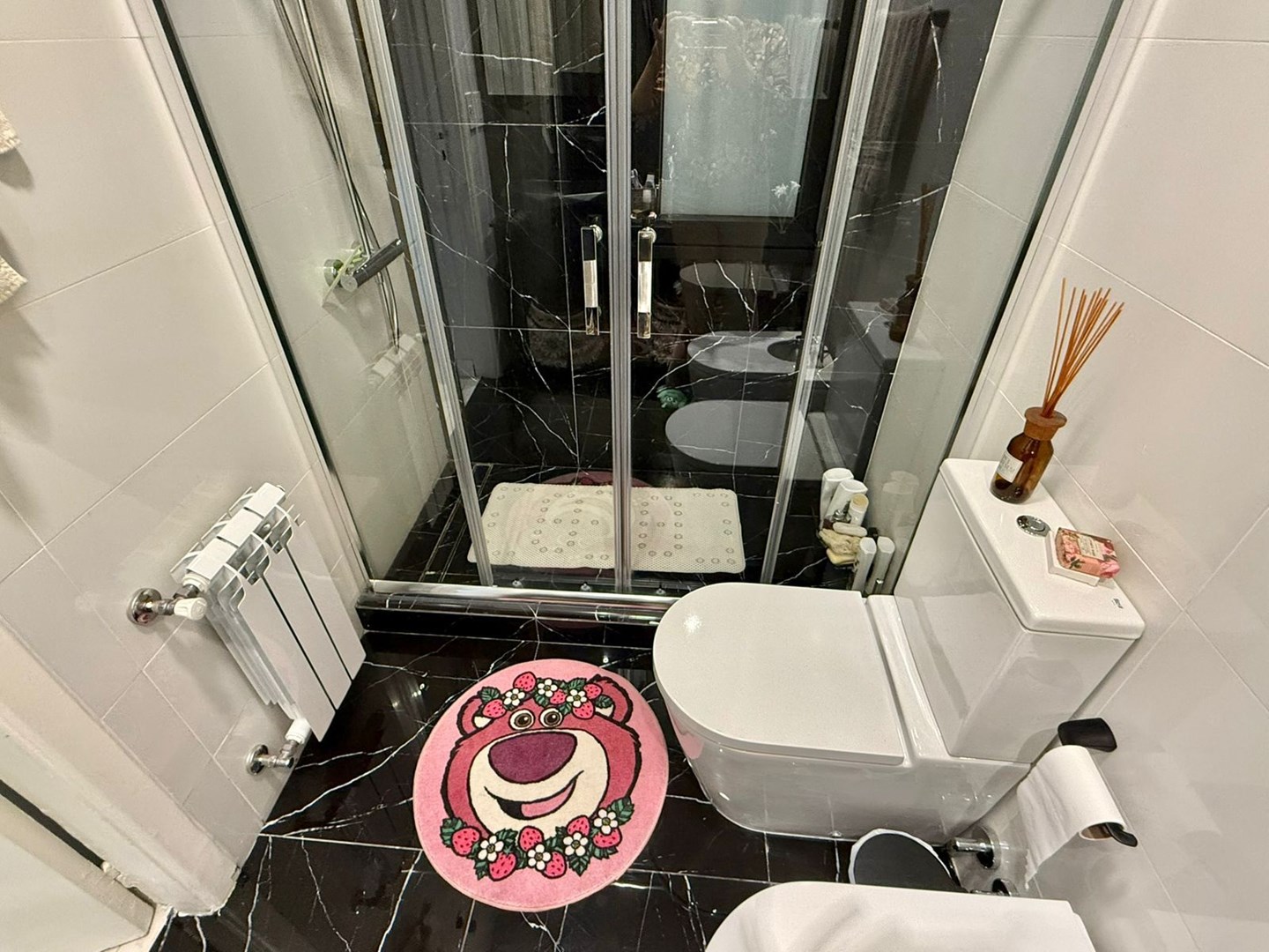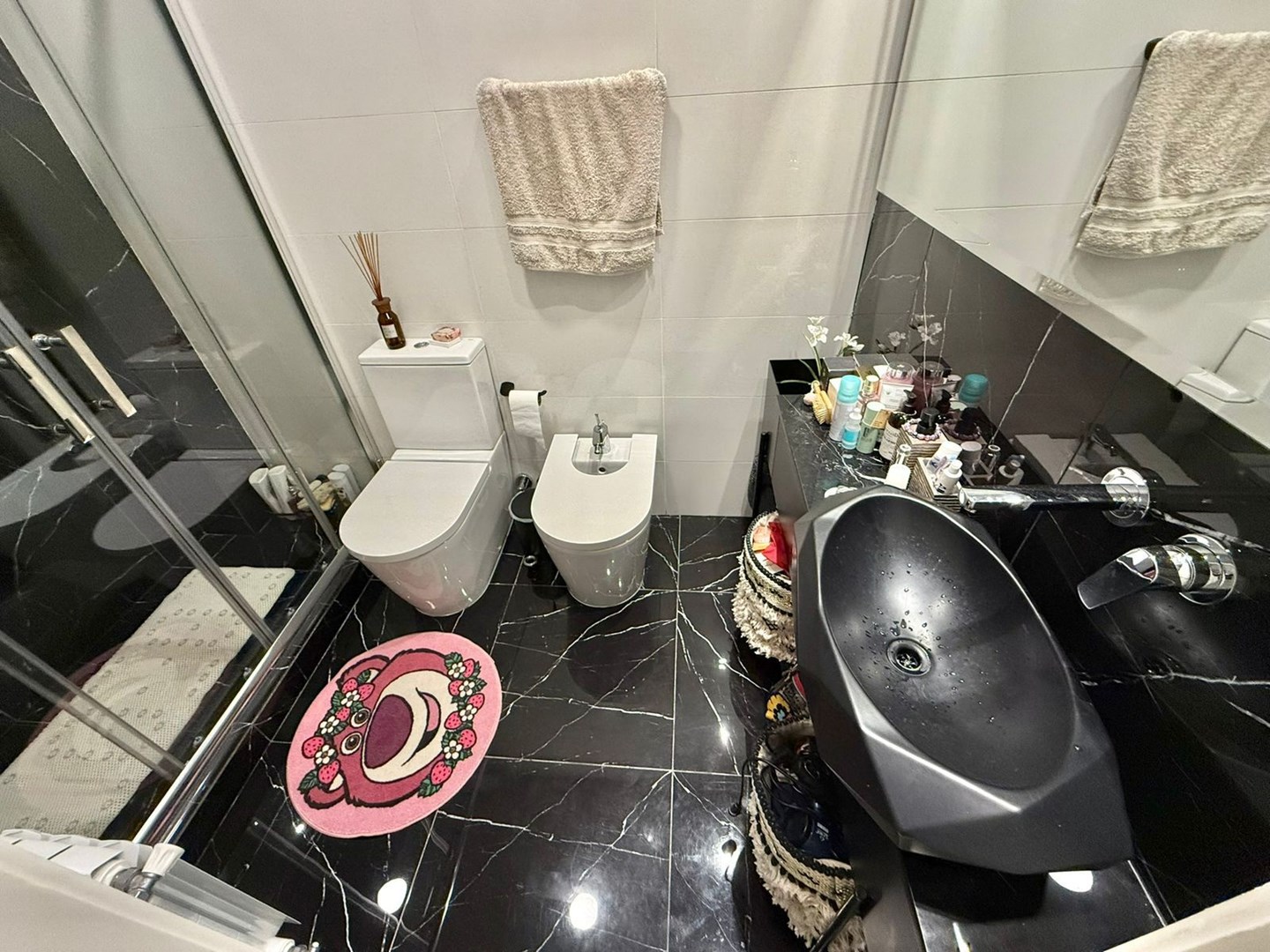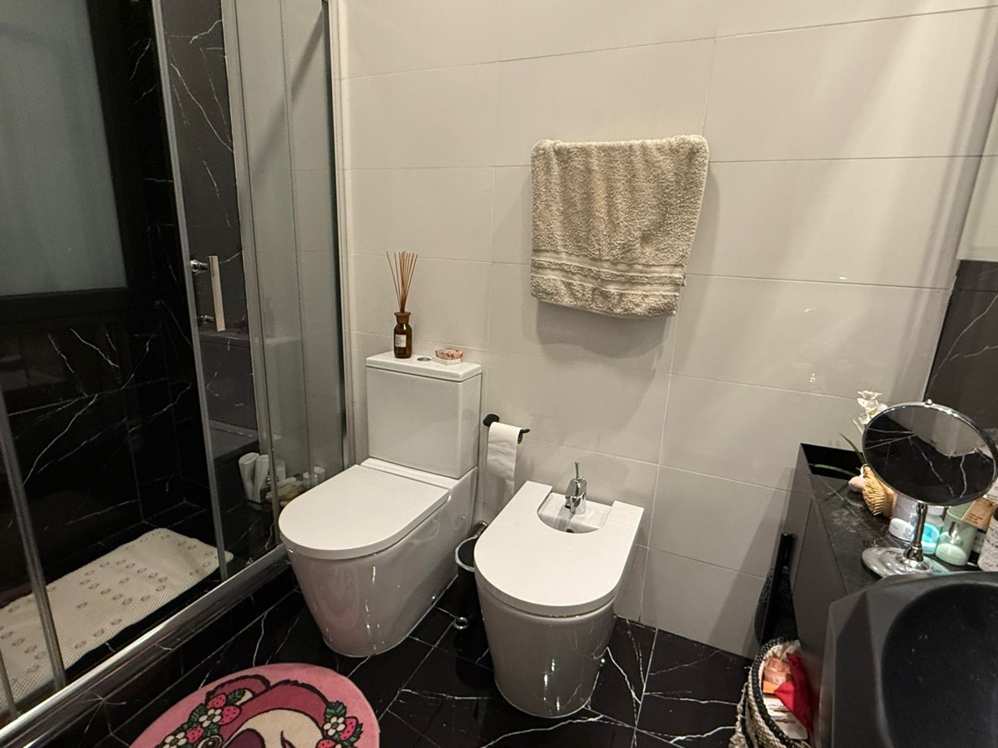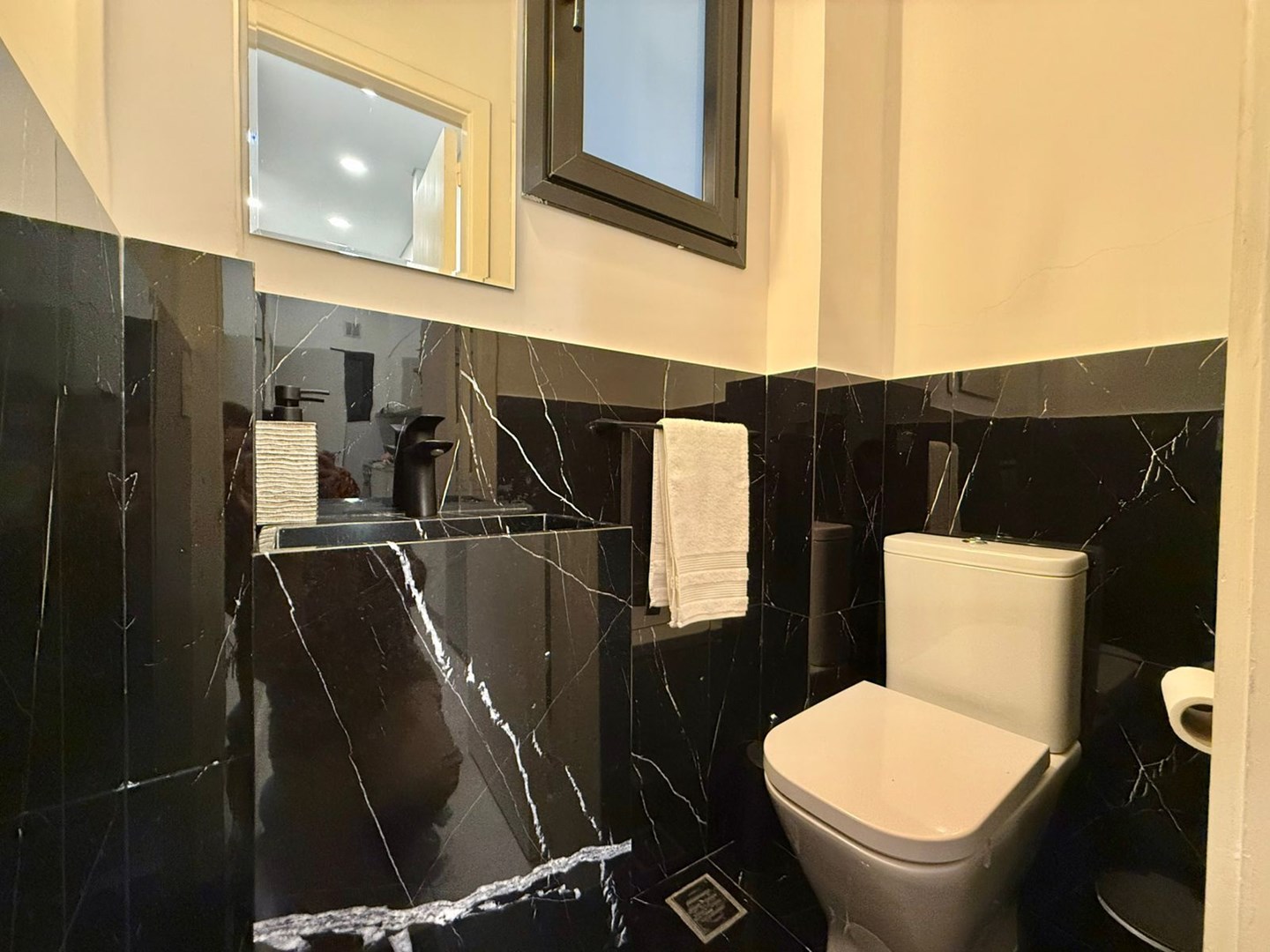 El dormitorio es amplio y cómodo, con vestidor hecho a medida de piso a techo y escalera interna, gracias a una destacada altura de techos de 4,25 metros. El baño principal es moderno y funcional, con griferías alemanas, sanitarios europeos Roca Inspira y ducha a estrenar. Además, cuenta con un toilette adicional con bacha de mármol a medida.