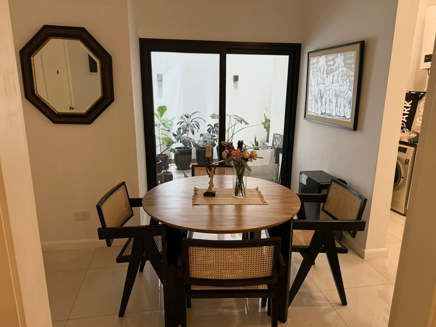 El living comedor se encuentra sectorizado y tiene salida directa a un patio propio. La cocina, también a estrenar, está equipada con horno eléctrico, hornallas a gas, mesada de silestone, extractor y ventana. El lavadero independiente tiene espacio para lavarropas grande.