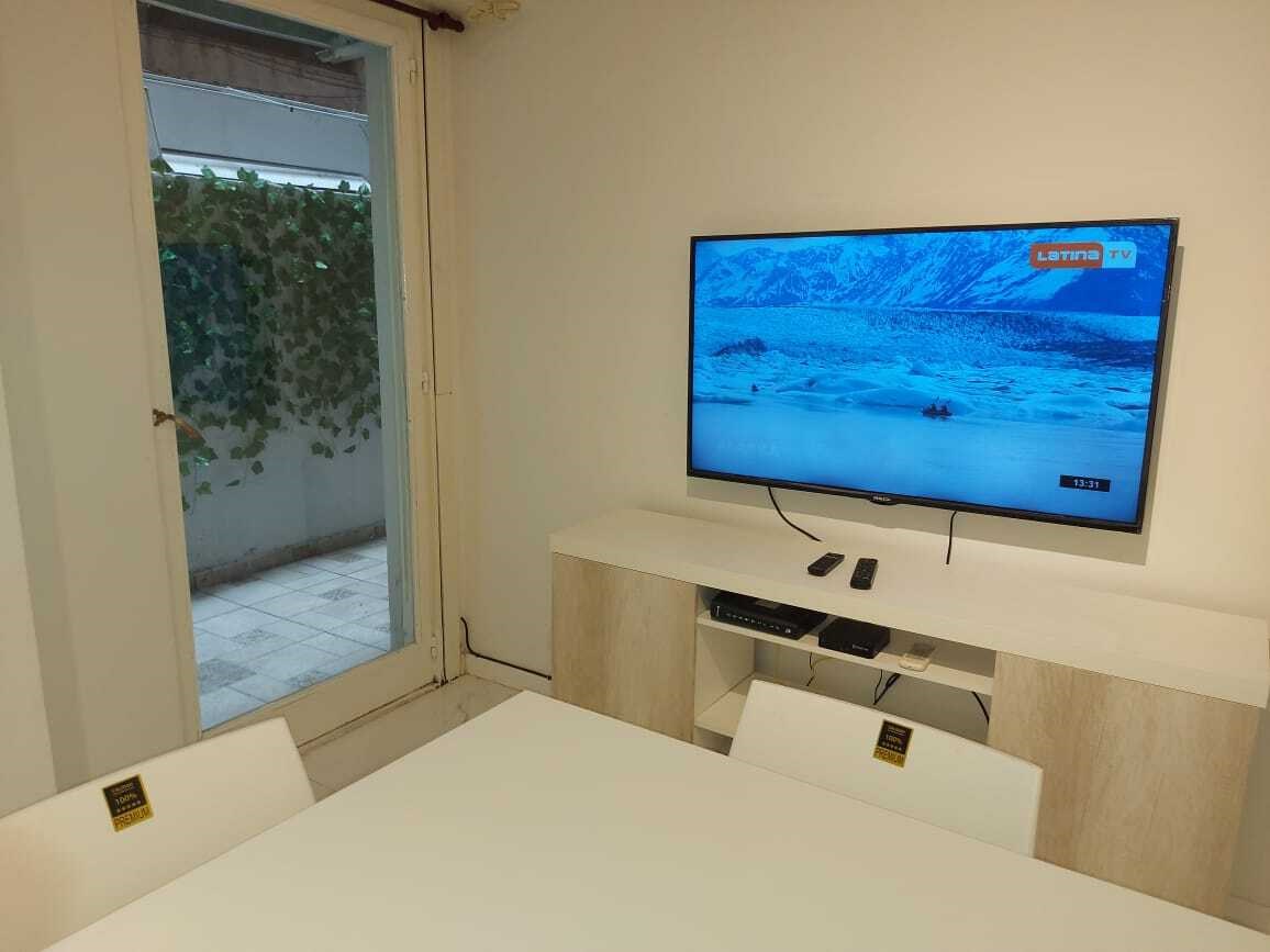 Excelente dos ambientes AMOBLADO y REFACCIONADO A NUEVO. Baños, cocina y pequeño patio. Se entrega con todo lo que figura en las fotos. el mismo se trasmite en un 50% por escritura, el otro 50% por boleto de compra venta. Dentro de 1 AÑO recien se podrá escriturar el otro 50%.