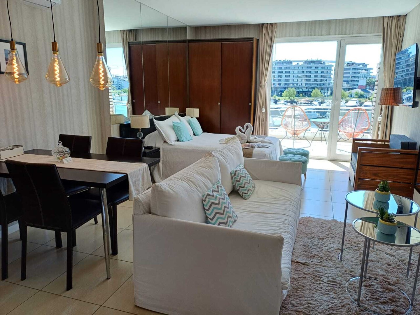 Monoambiente de 49 m² totales (40 m² cubiertos + 9 m² de balcón terraza), con vistas abiertas a la Bahía Grande de Nordelta.