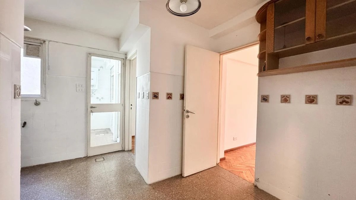 Consta de 4 amb. living comedor, cocina completa, lavadero independiente, doble circulación (entrada principal por living y secundaria por cocina) tiene 3 dormitorios c/placard, 1 dependencia de servicio, 1 baño con jacuzzi y 1 toilette con ducha, balcón corrido y cochera cubierta con portón automático.