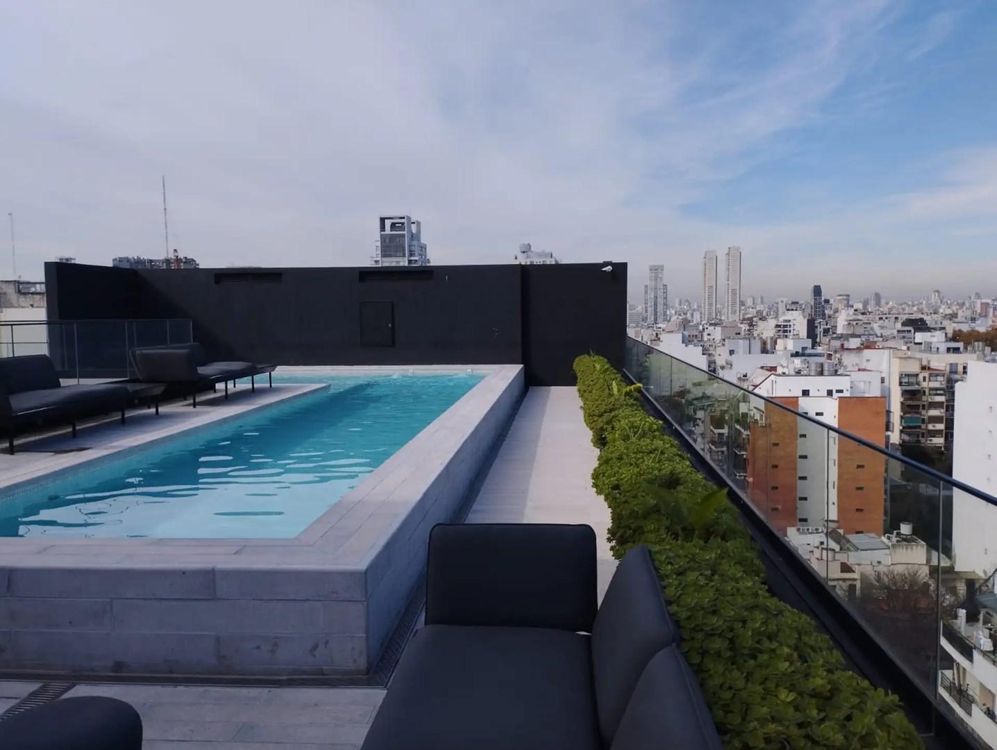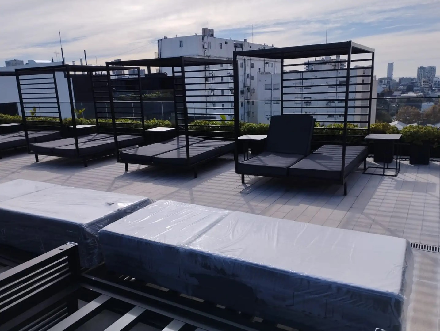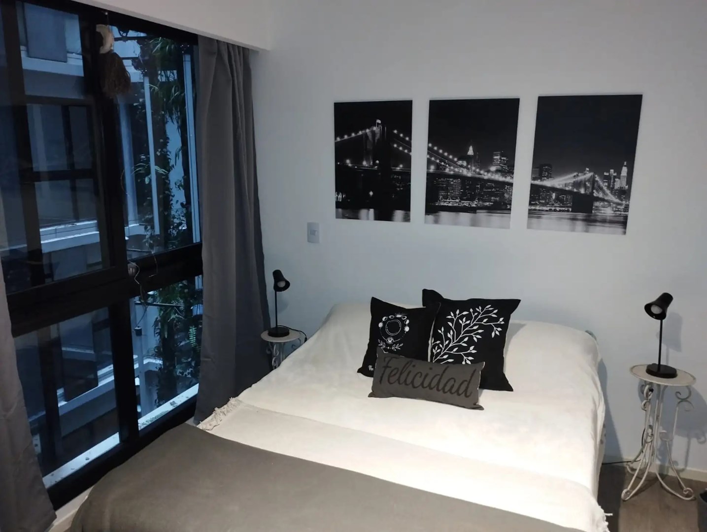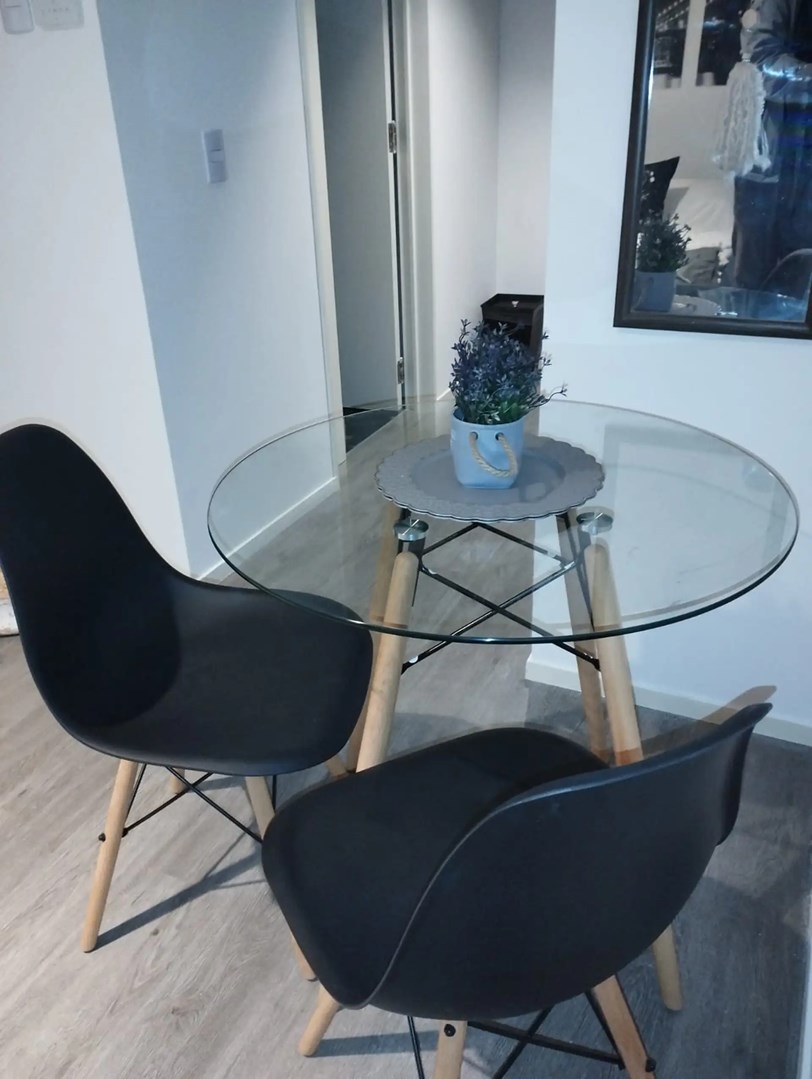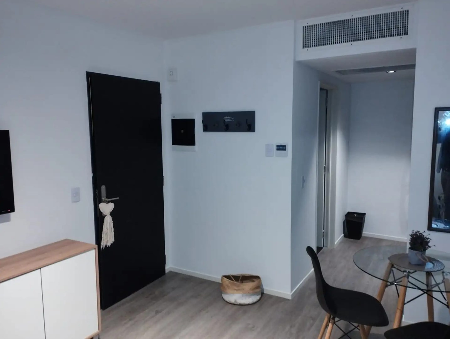 El departamento cuenta con vista al jardín colgante interno, cocina equipada con muebles bajo y alto mesada, baño con ducha y mobiliario completo a estrenar.