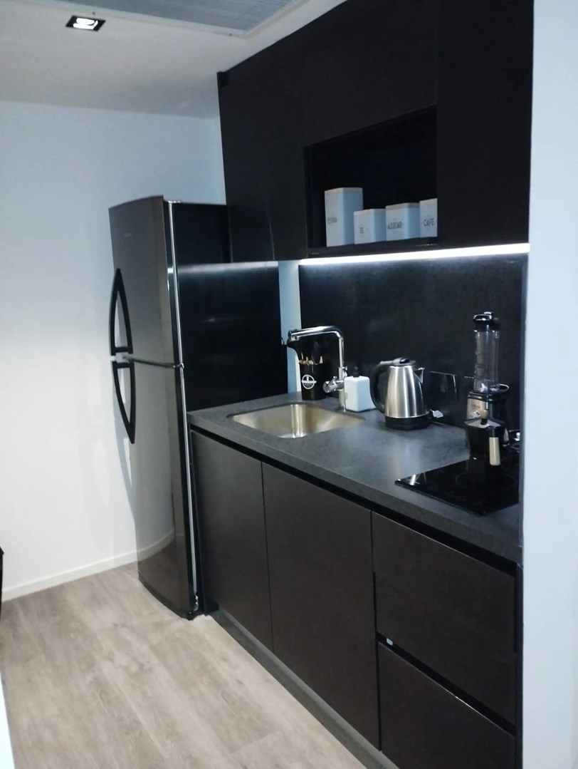Espacio de co-working de 300 m² con salas privadas de reuniones, heladeras y cocina.