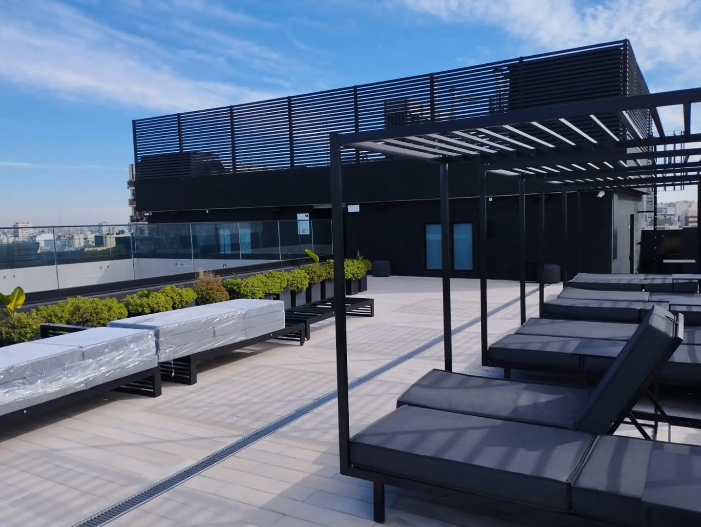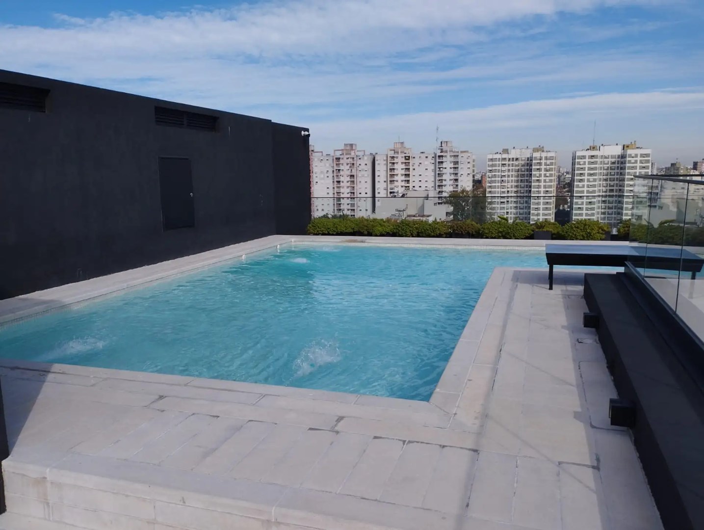 Terraza con pileta descubierta, parrillas y amplios espacios totalmente equipados para reuniones y festejos.