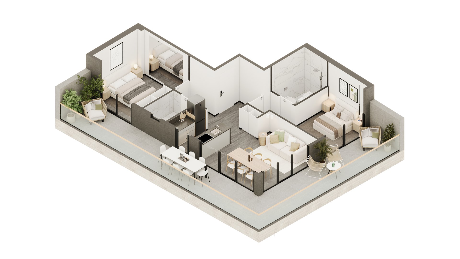 Tipologías de 1, 2 y 3 ambientes.