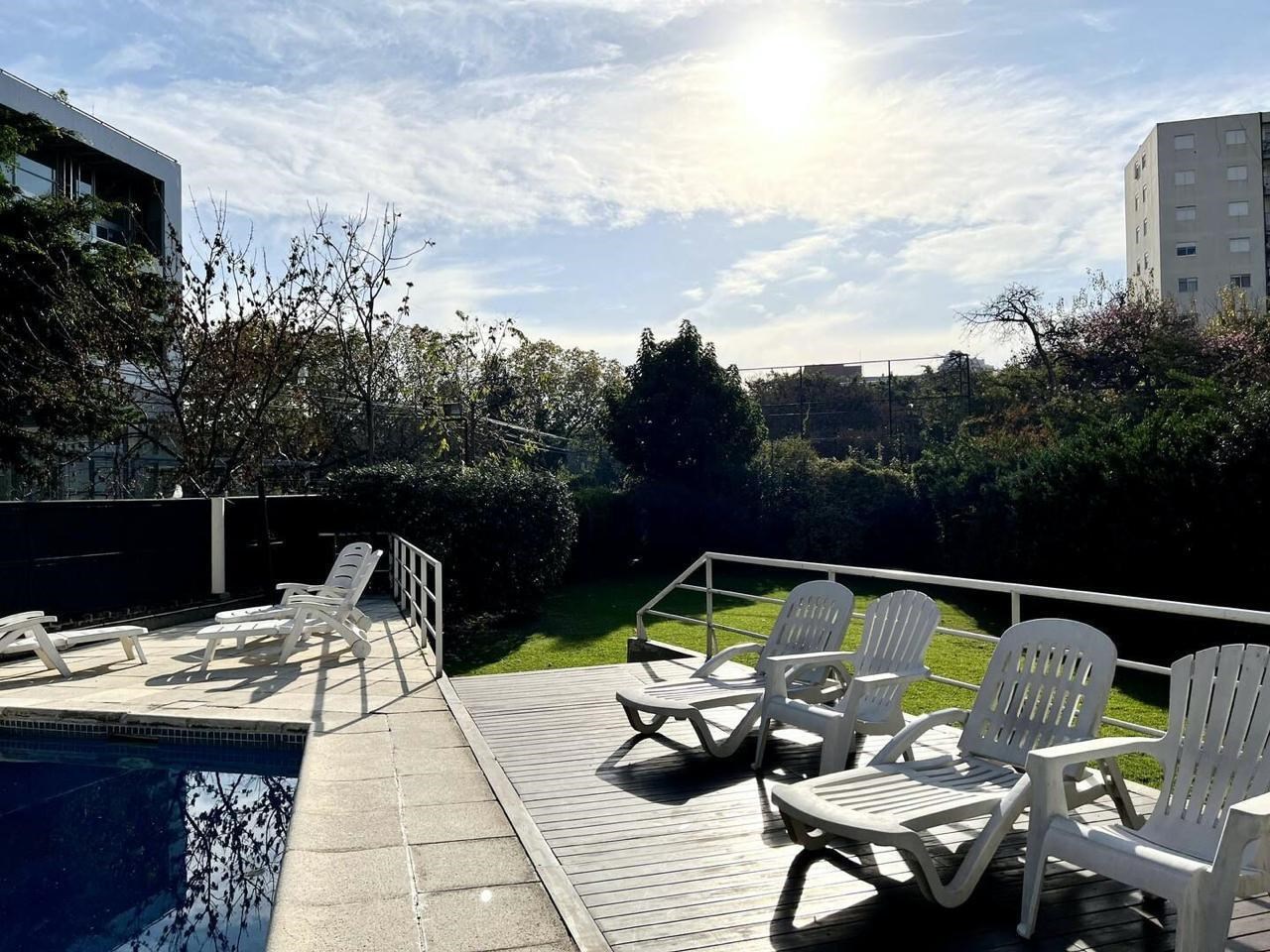 El edificio ofrece amenities de primer nivel: gran piscina rodeada de jardines, gimnasio, sauna y área de lavandería. Además, cuenta con seguridad permanente y cochera.