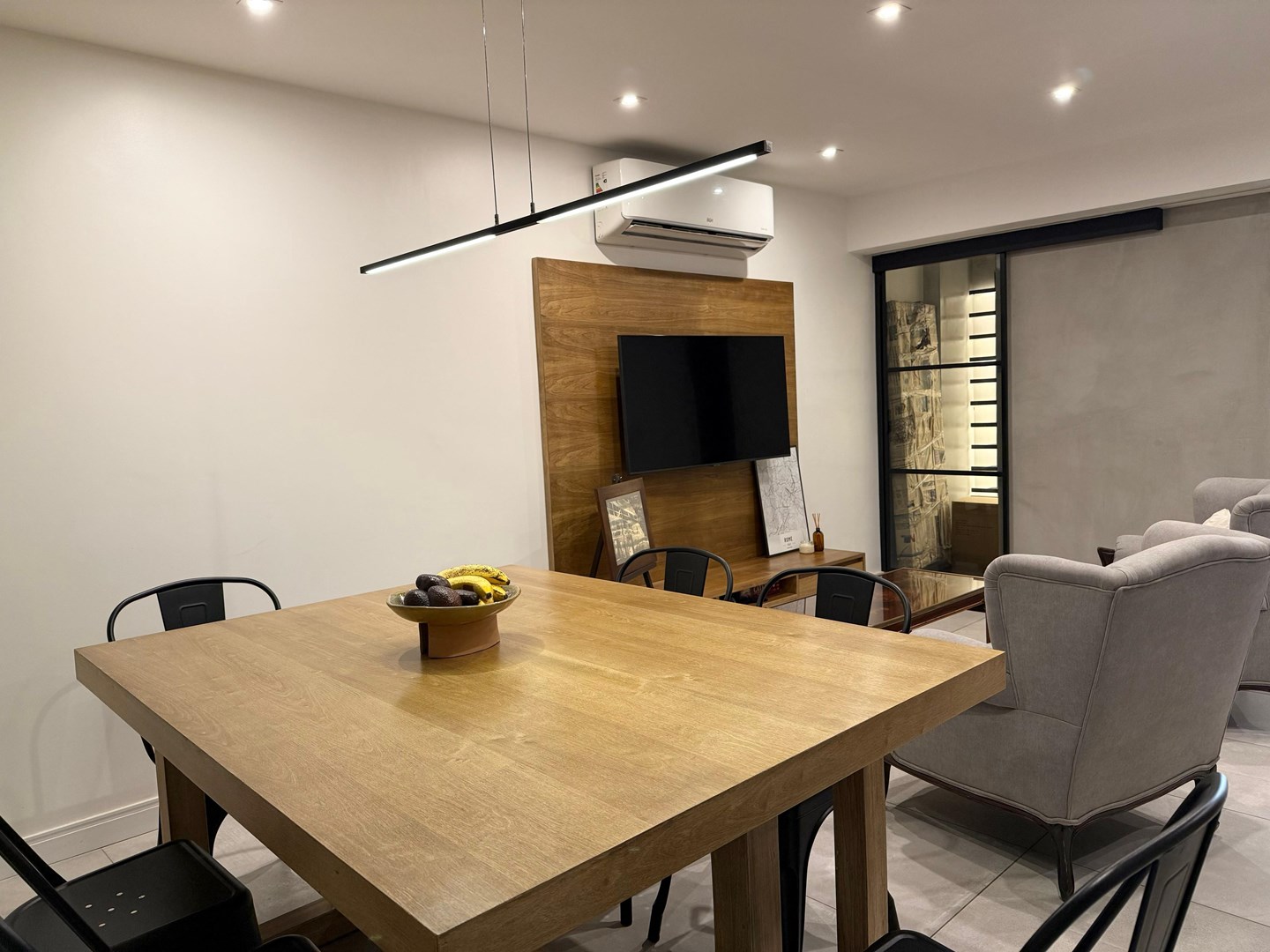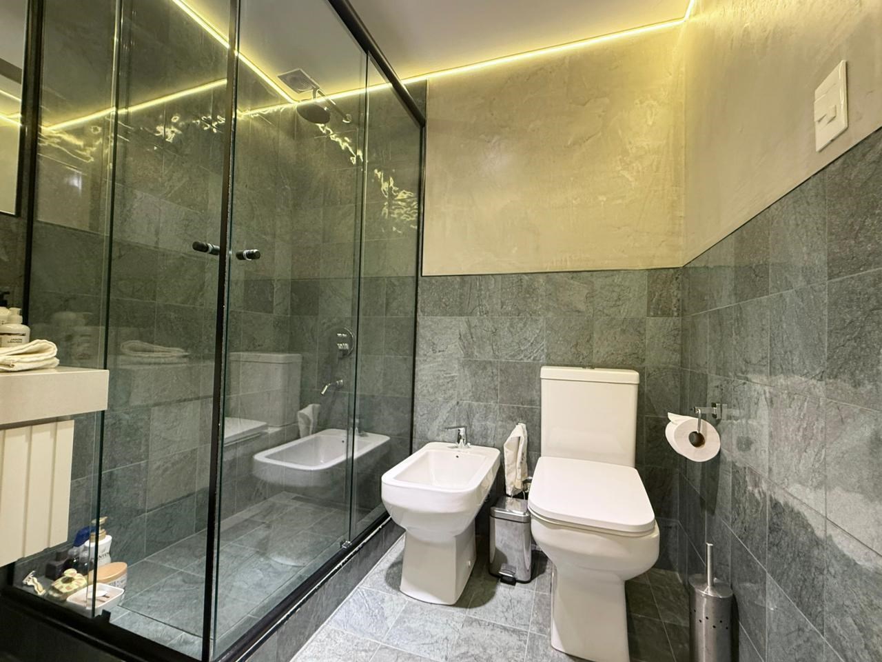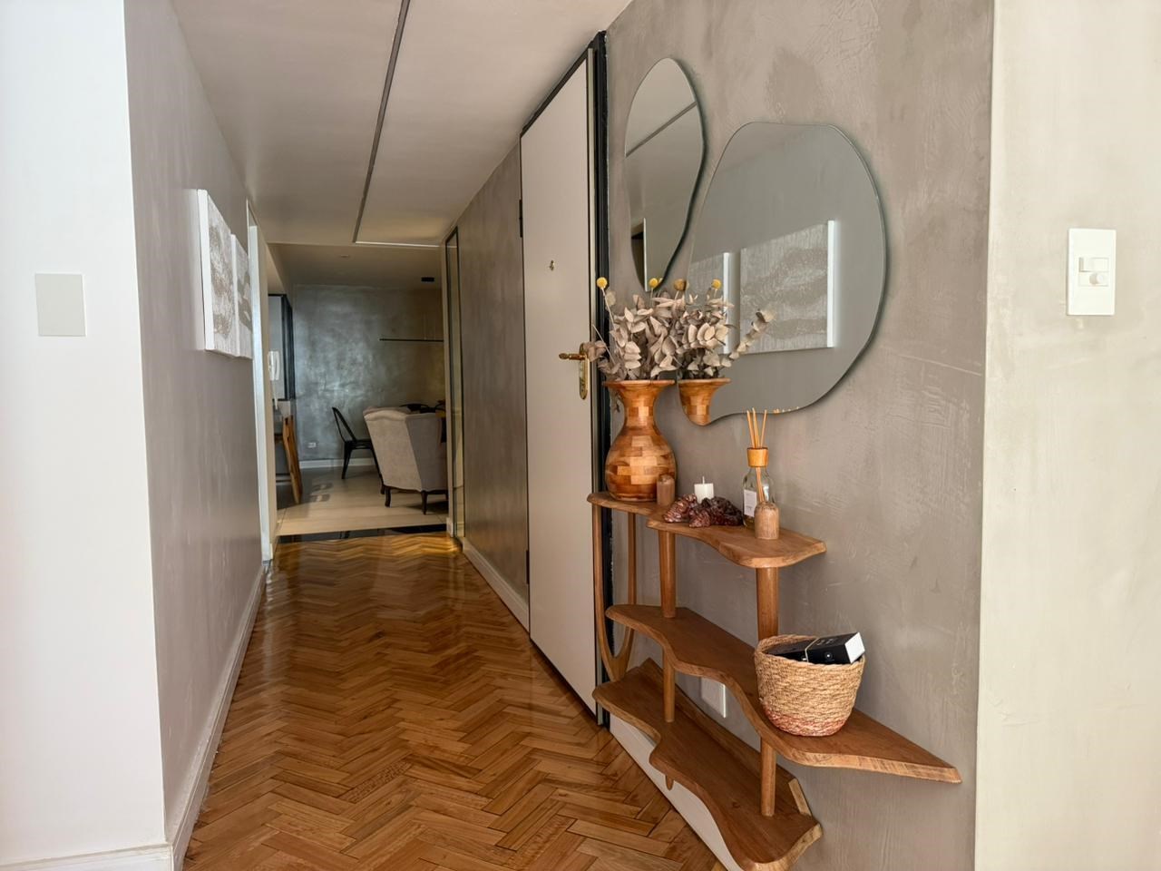 Actualmente posee 2 dormitorios, uno en suite, más 1 baño completo y 1 toilette. El amplio living comedor se generó al integrar el tercer dormitorio, con la posibilidad de volver fácilmente a un 3° dormitorio (ya que se conservaron el placard , la salida al balcón y el acceso intactos).