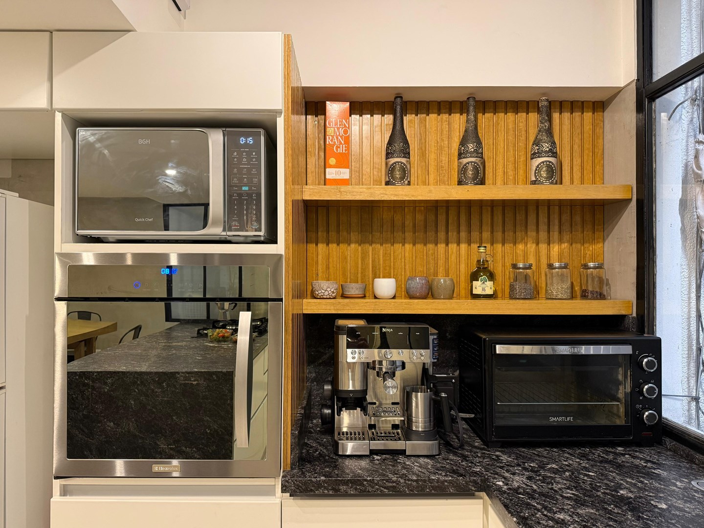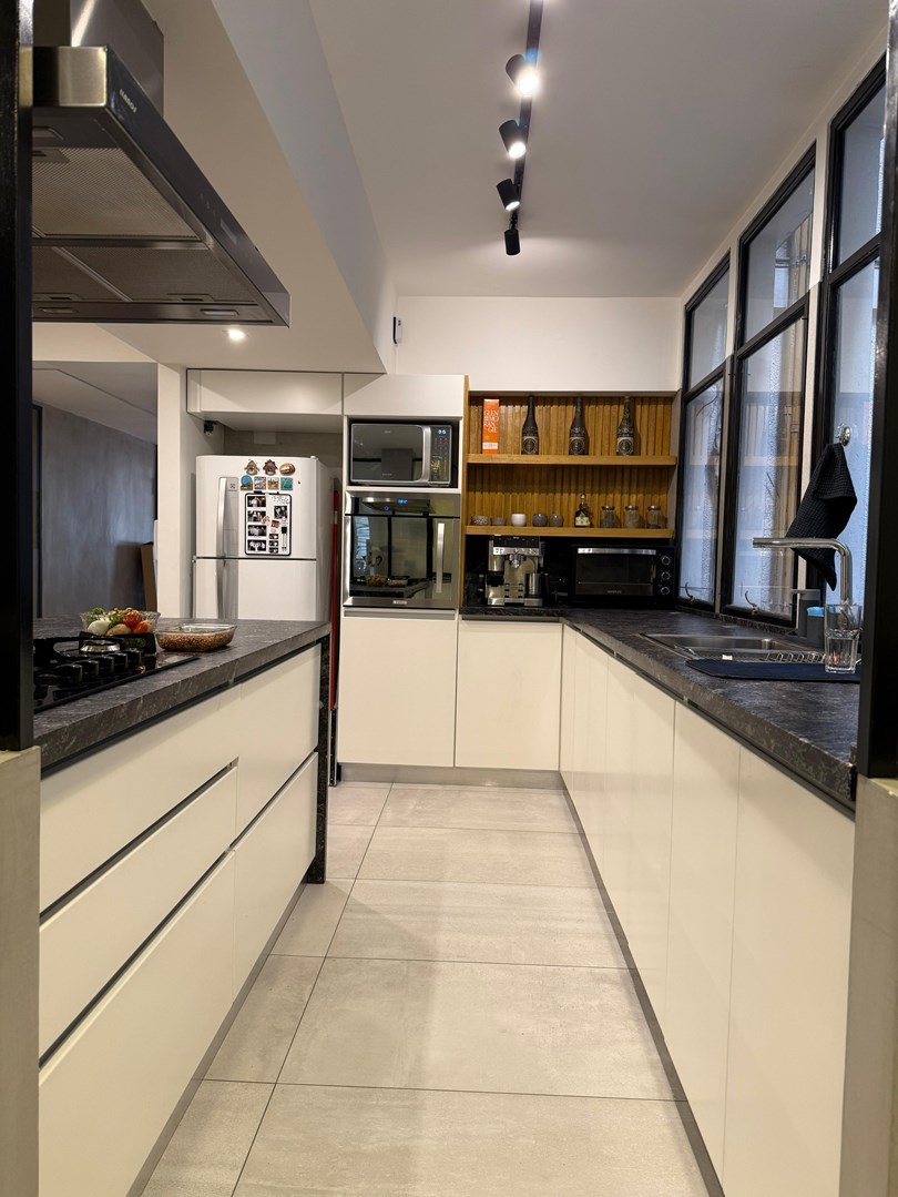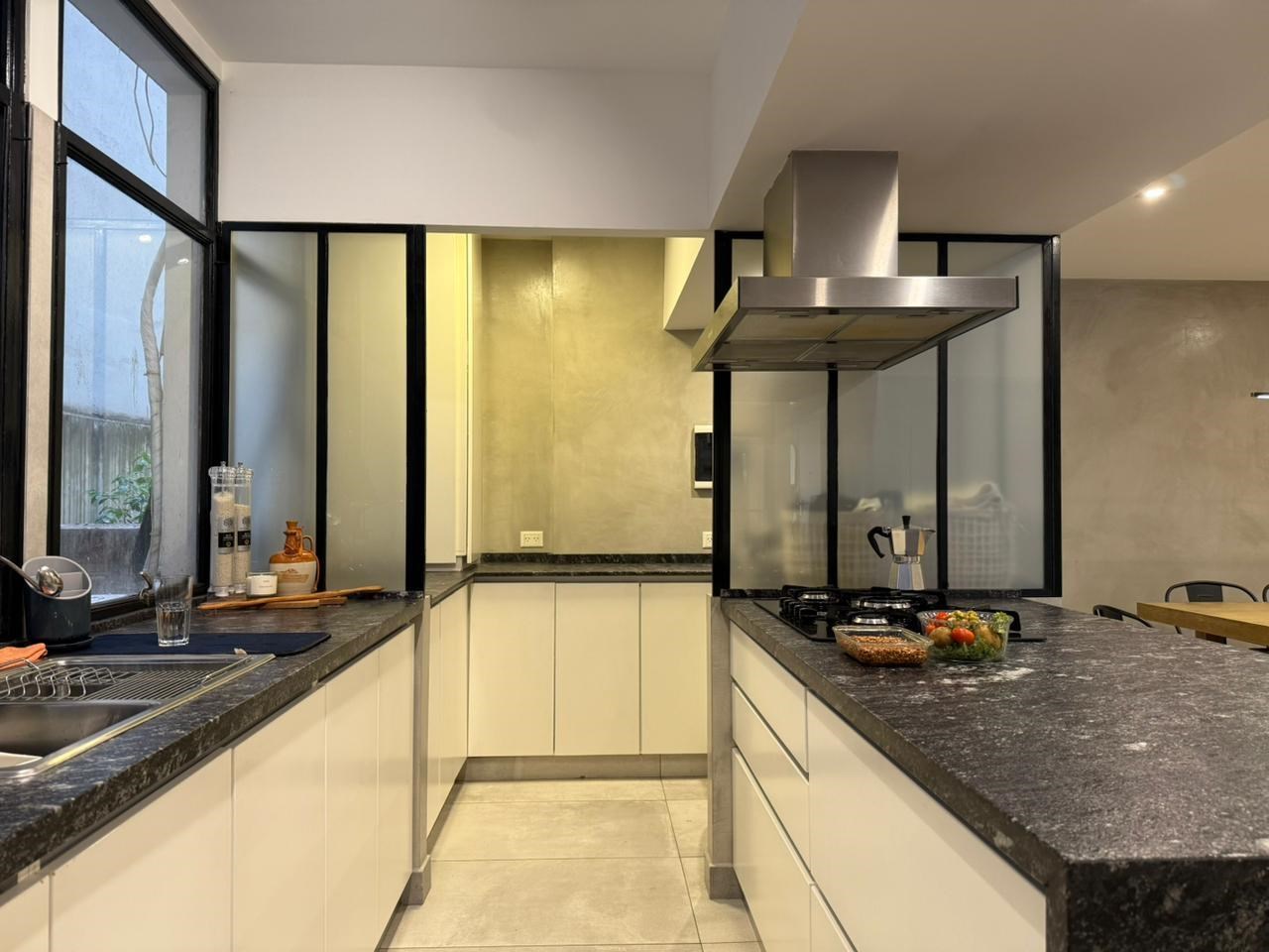 La cocina posee un diseño moderno, bodega, lavadero y esta integrada con un segundo espacio de living/comedor diario.