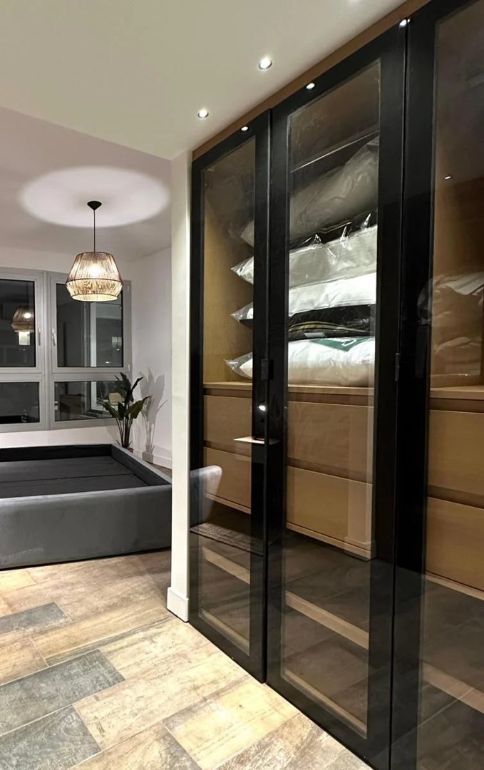 Dormitorio: Cama Queen con colchón híbrido de resortes y memory foam, televisión Nano LED de 43″.