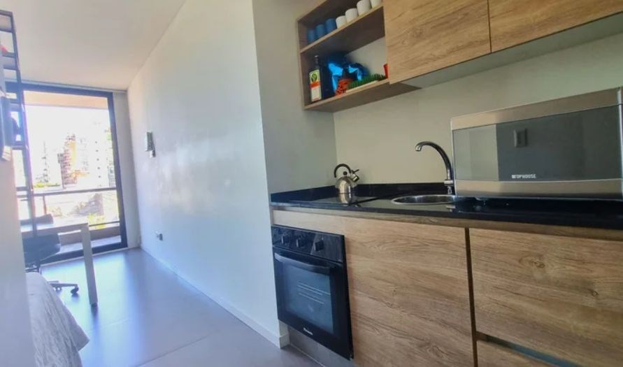 Moderno monoambiente divisible de 33 m² con cocina integrada, baño completo, balcón y gran luminosidad. Edificio con pileta climatizada, gimnasio, coworking, parrillas, jacuzzi, seguridad 24 hs y más.