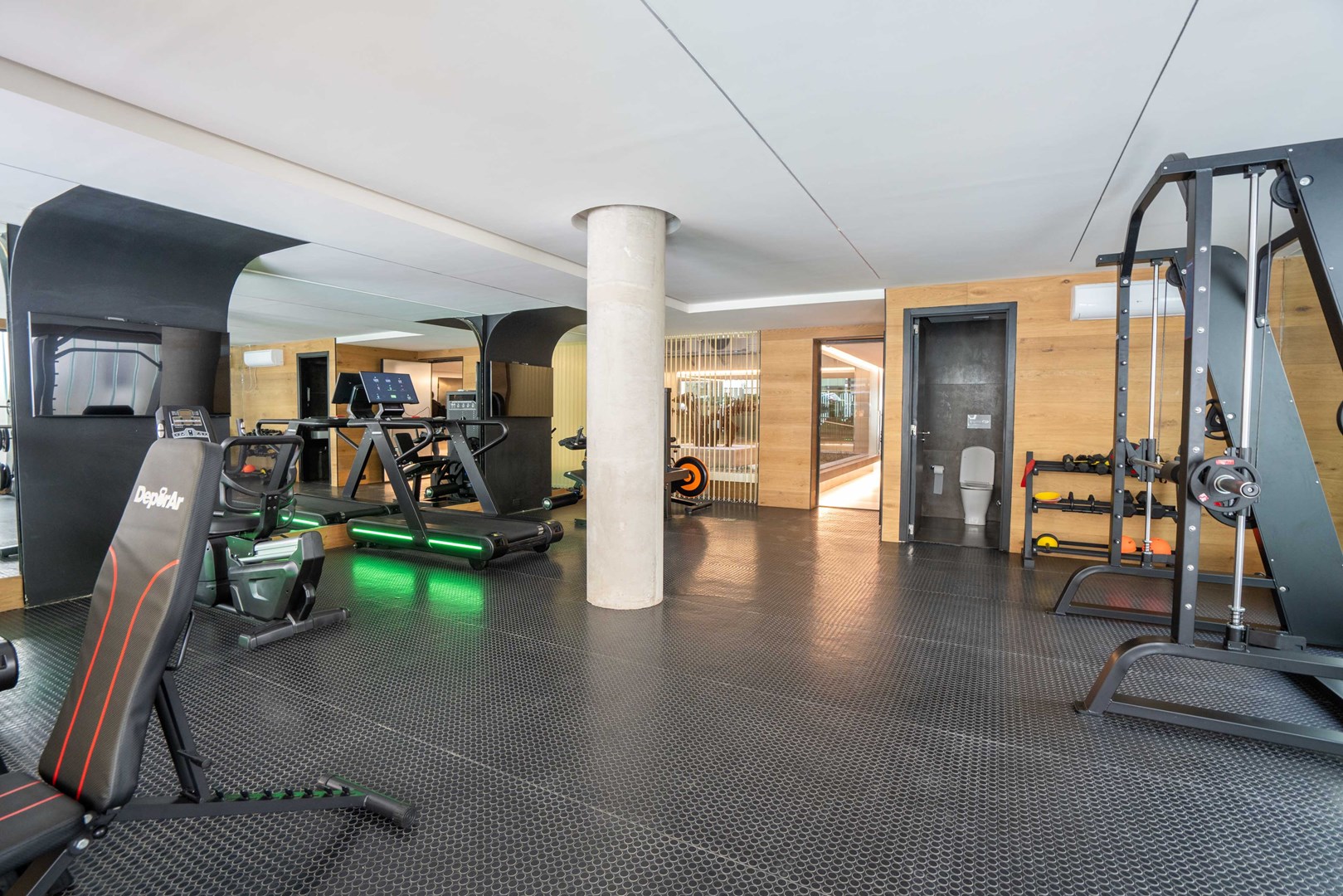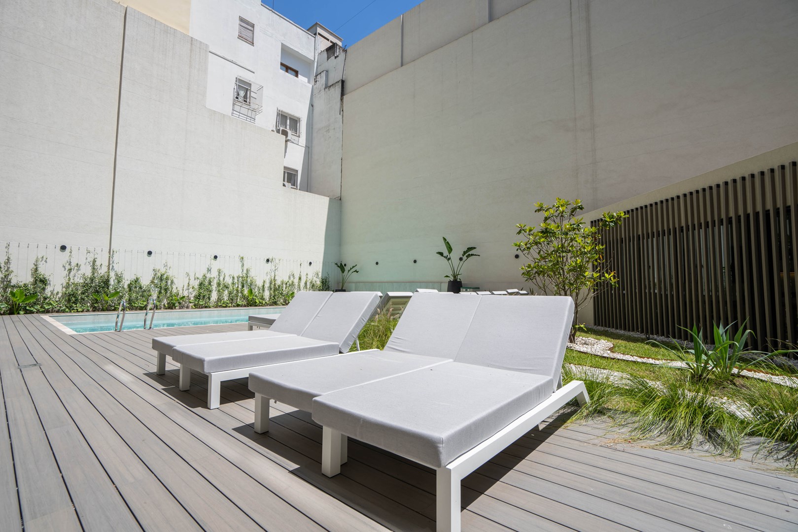 El complejo ofrece full amenities de alta gama: pileta climatizada, solárium, sauna, sala de masajes y relax, gimnasio, SUM, quincho con parrilla, laundry, área de juegos infantiles, vestuarios y lockers. Además, cuenta con seguridad 24 horas, grupo electrógeno, bicicletero, Wi-Fi en áreas comunes, sala de recepción de paquetes y cocheras fijas y bauleras opcionales.rn/
