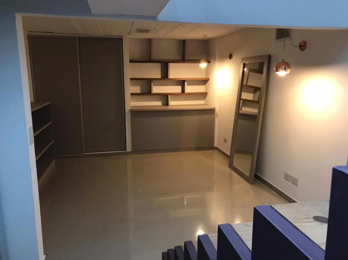Presenta un sector con doble altura y escalera de acceso. Incluye armarios integrados, bibliotecas, espacio para escritorio, espacio baulera de 1×2 metros, y un amplio espacio para cama o privado.
