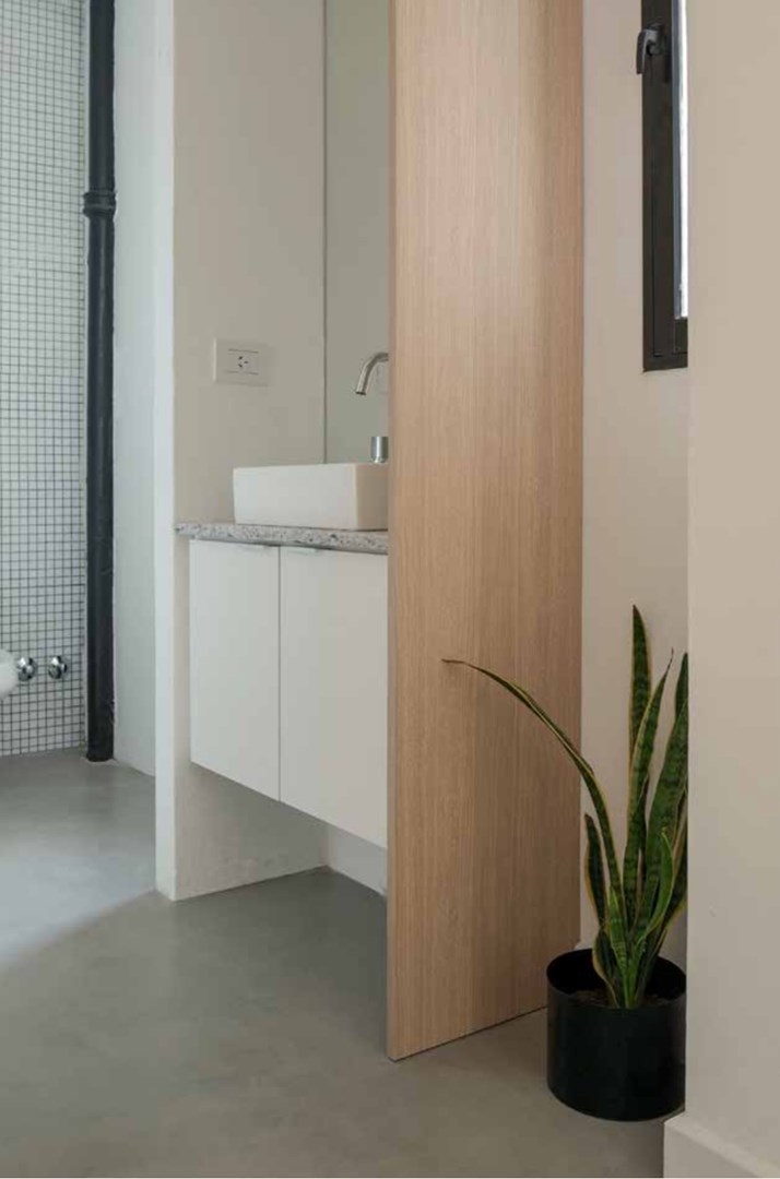 Baño y ante baño completo con mampara vidrio blindex templado en ducha y griferias y sanitarios Ferrum.