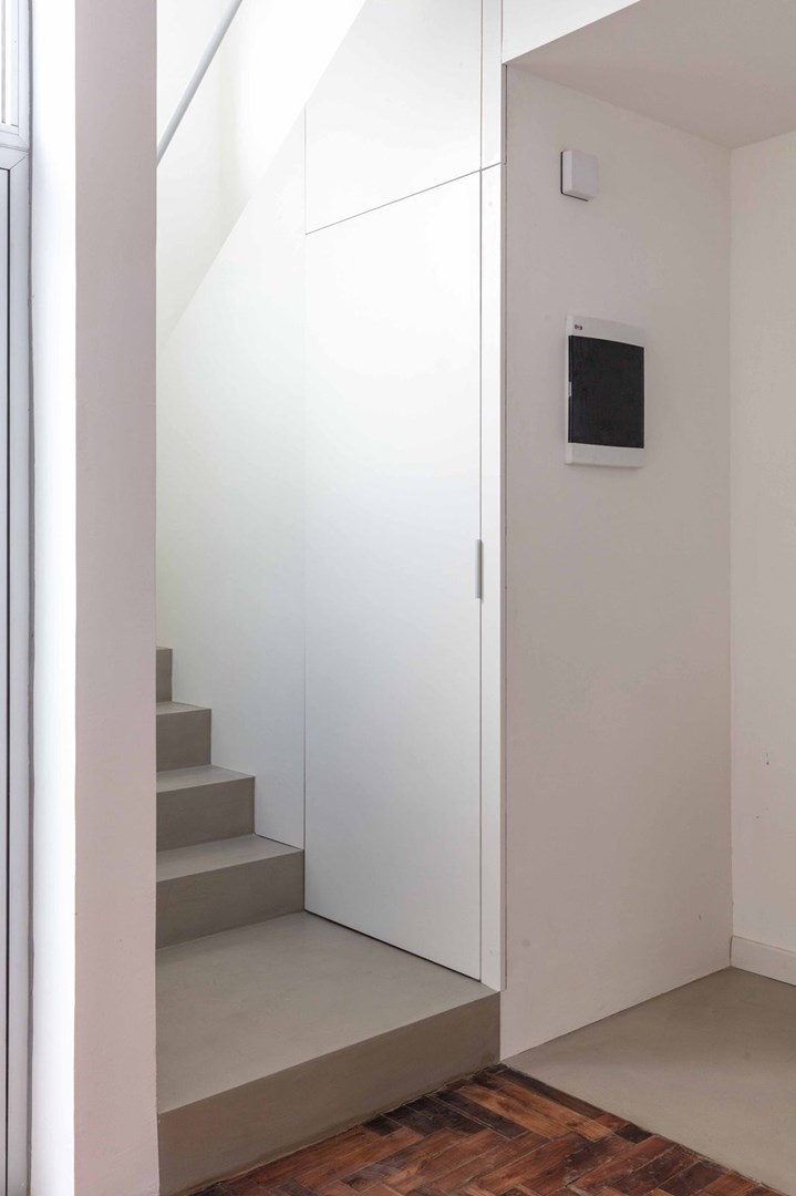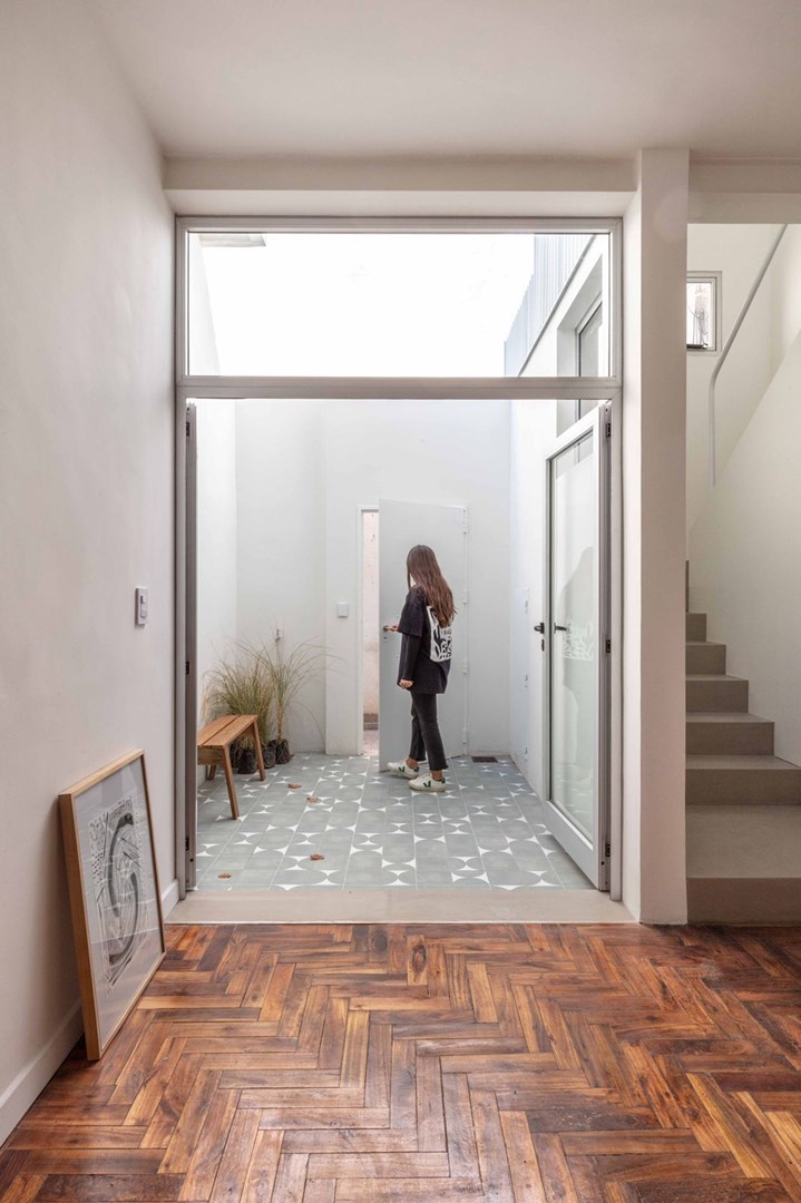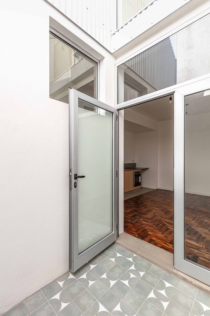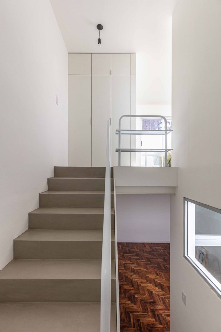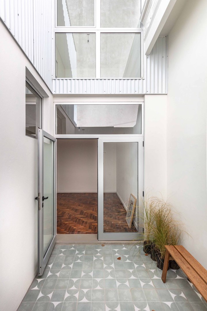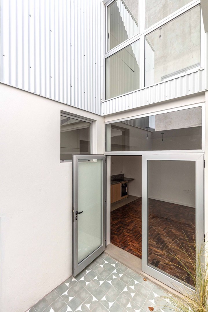 52 m2 totales distribuidos en dos plantas, con patio en planta baja y balcon en planta alta.