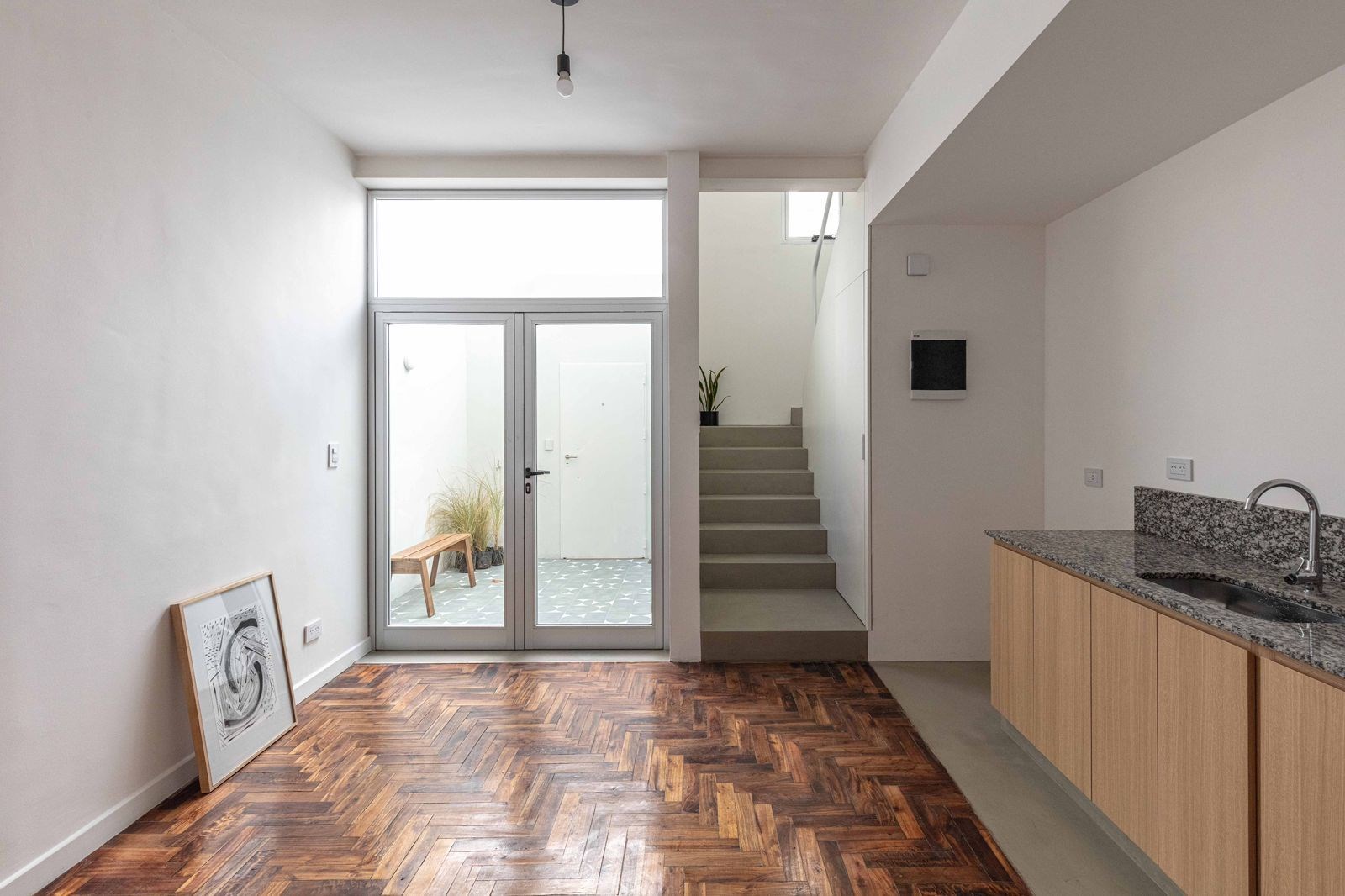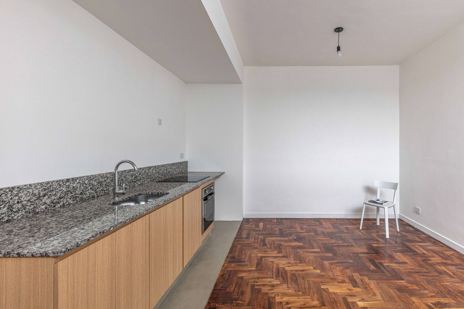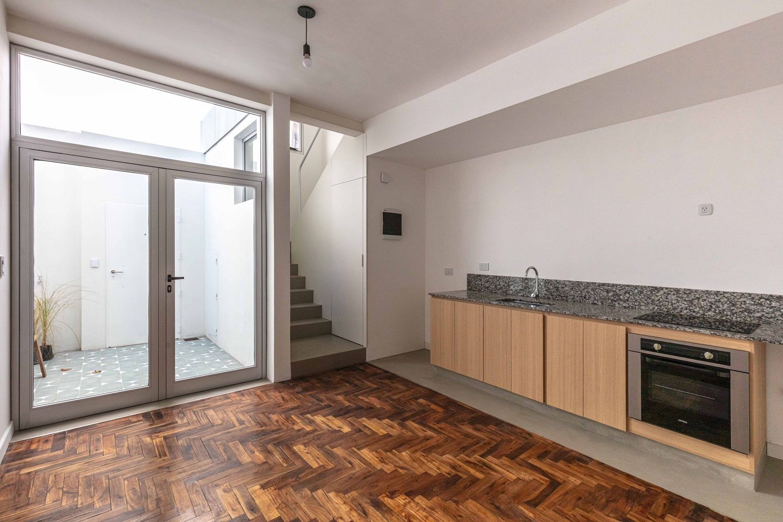 Pb: living comedor con cocina integrada con artefactos a estrenar, mesada de granito e instalacion para lavarropas. Toilette y baulera