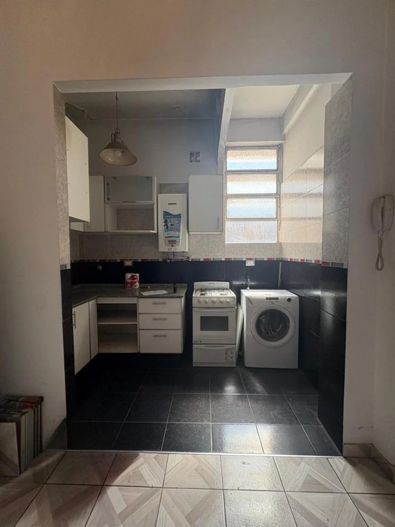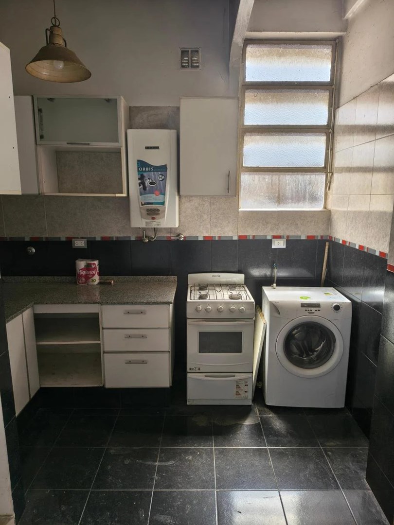 El departamento se ubica al contrafrente, con vista a un patio interno, lo que lo hace silencioso. Consta de un living-comedor amplio y un dormitorio con buena superficie. La cocina tiene muebles sobre y bajo mesada y posee espacio para lavarropas. Se completa con un baño completo y pisos cerámicos.