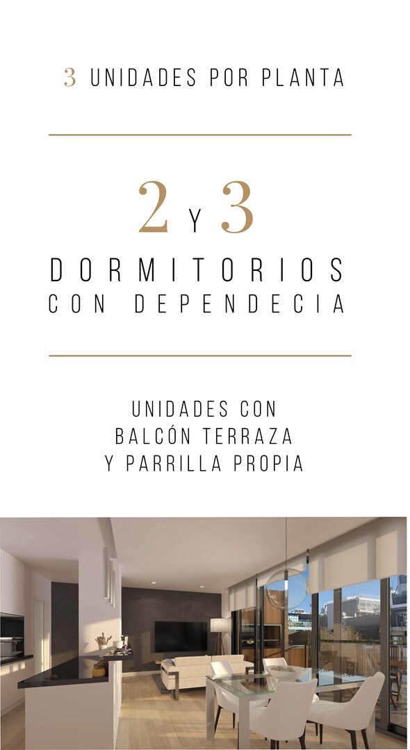 planta de 2 a 3 dormitorios con y sin dependencia. Además, en los niveles 8vo y 9no, las unidades dispondrán de terraza y parrilla propia.