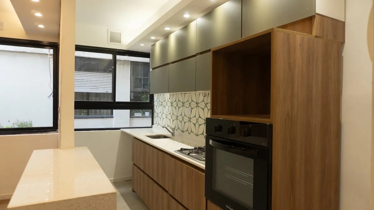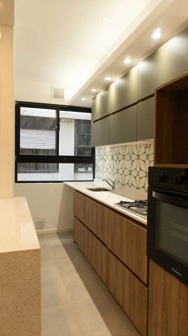 La unidad consta de un dormitorio y el patio se accede desde este ambiente. La cocina está equipada con mesadas de silestone, horno eléctrico y anafe a gas nuevos, y pileta Johnson. El baño y la cocina tienen cañerías nuevas.