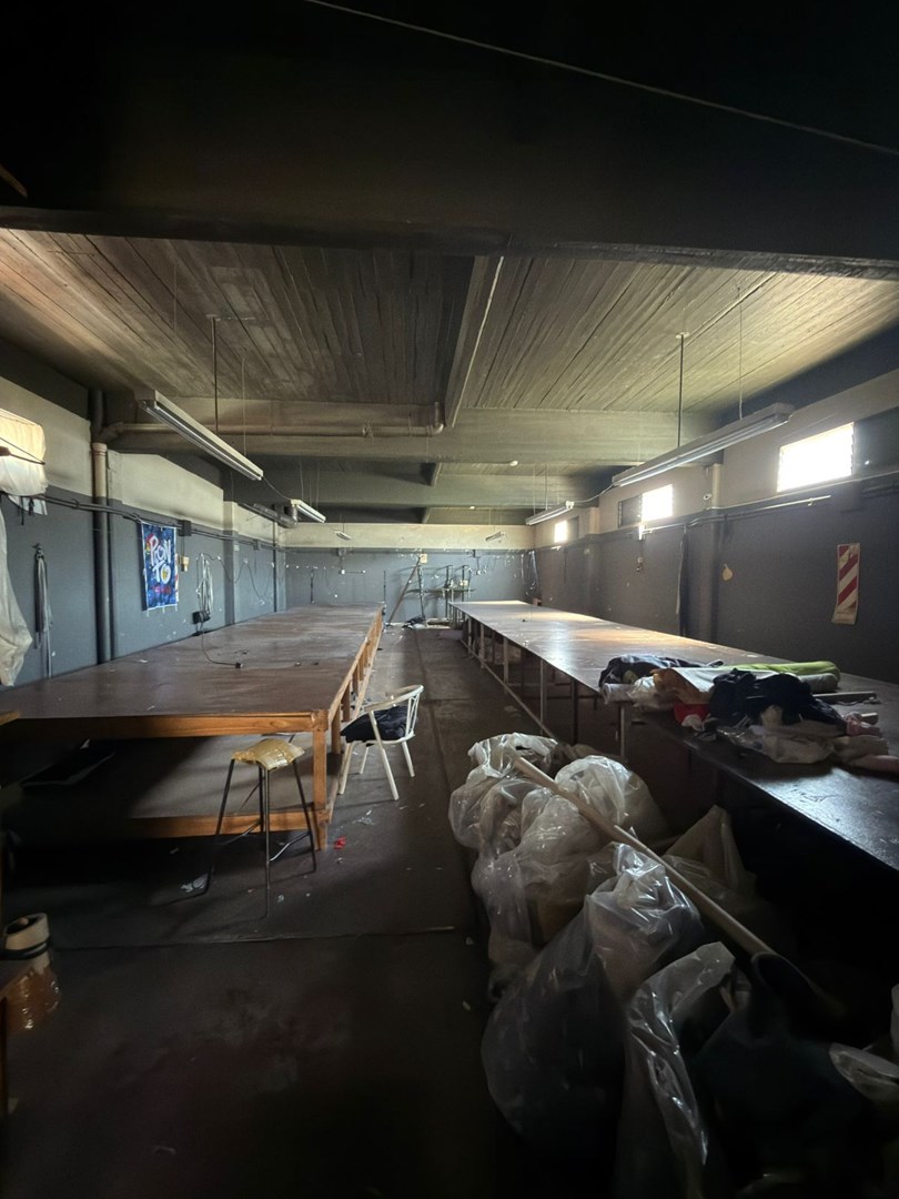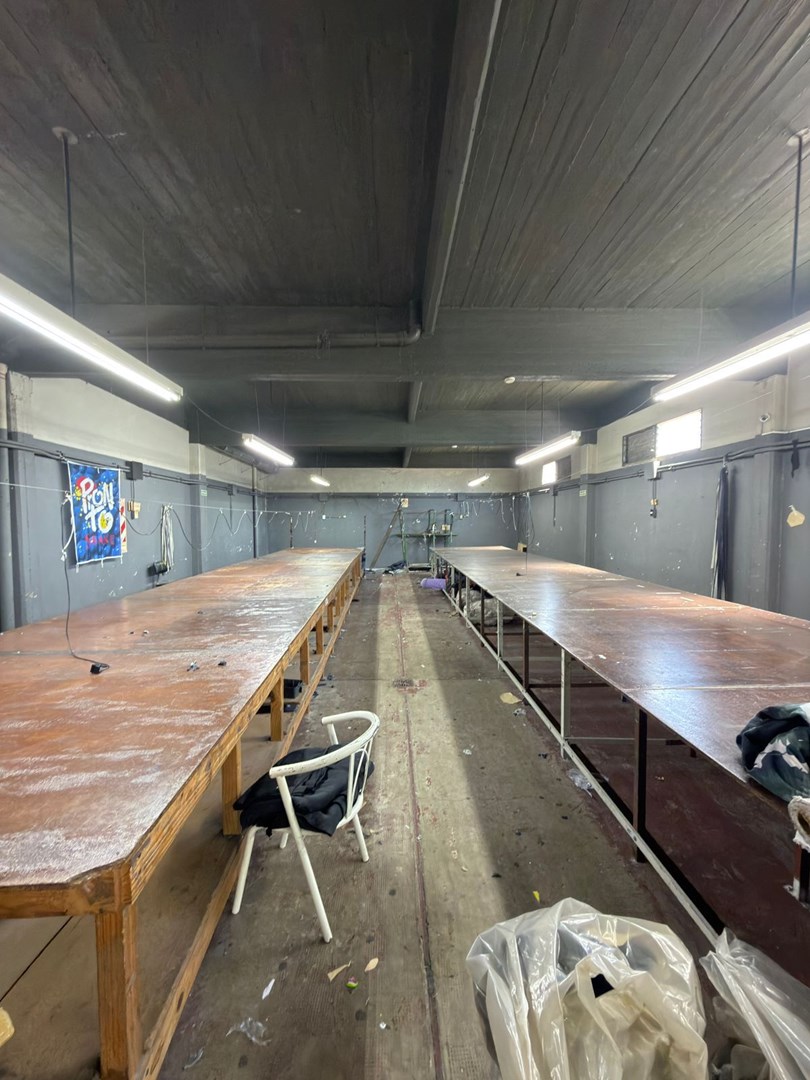 En la segunda planta se emplazan dos oficinas y dos baños, junto con lo que serian las mesas de confección textil.
