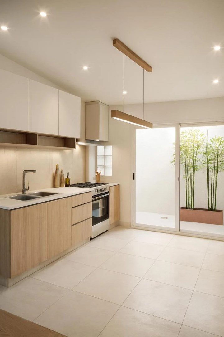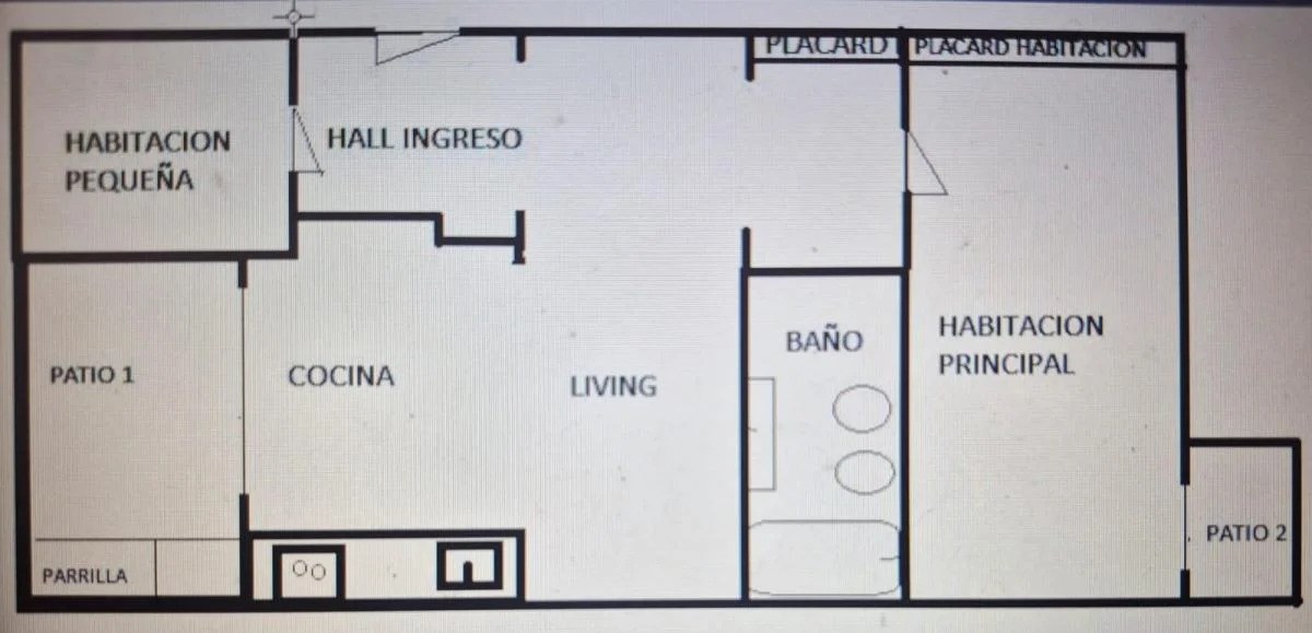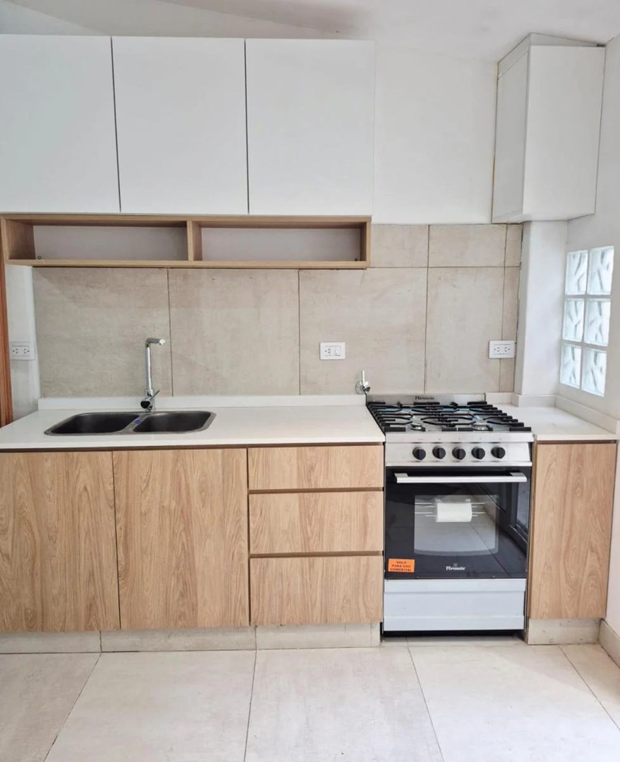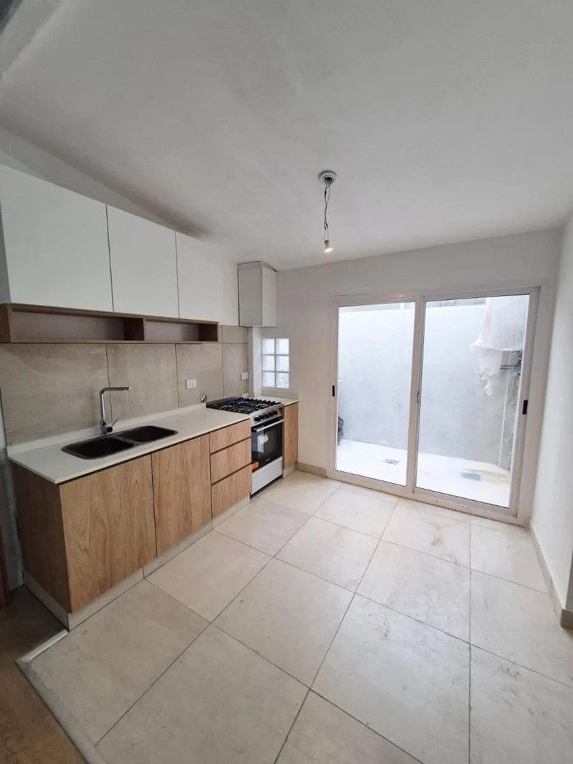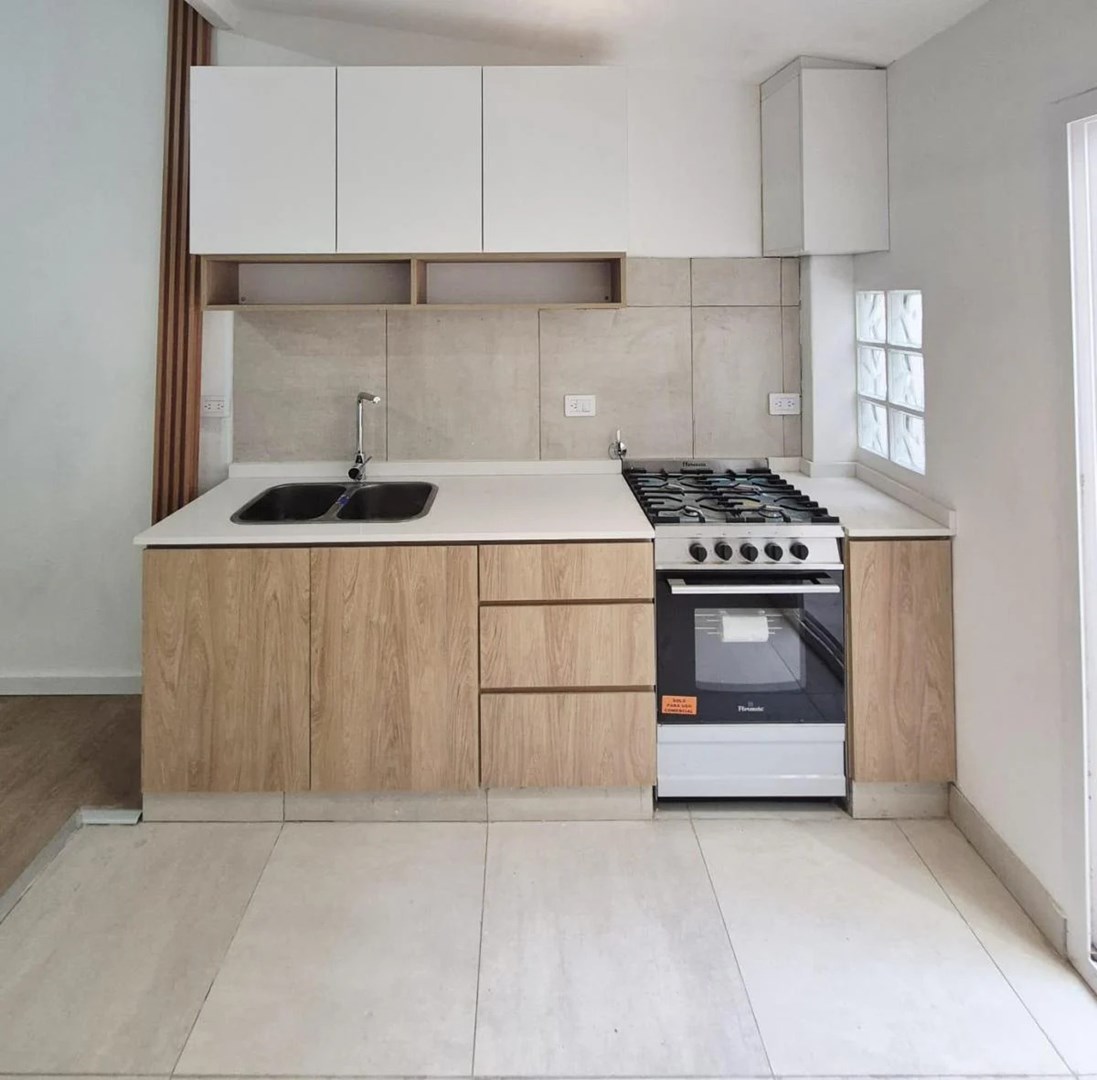 EL DEPARTAMENTO ES DE TRES AMBIENTES UBICADO EN PLANTA BAJA, SE INGRESA Y A LA IZQUIERDA ENCONTRAREMOS UN AMPLIO LIVING COMEDOR CON COCINA INTEGRADA TOTALMENTE HECHA A NUEVA CON COCINA Y HORNO A GAS, MUEBLES DE BAJO MESASA Y ALACENA MODERNOS, CON MESADA DE CUARZO BLANCO, ESTE ESPACIO VENTILA A UN PATIO CON PARRILLA Y ESPACIO PARA EL LAVARROPAS.
