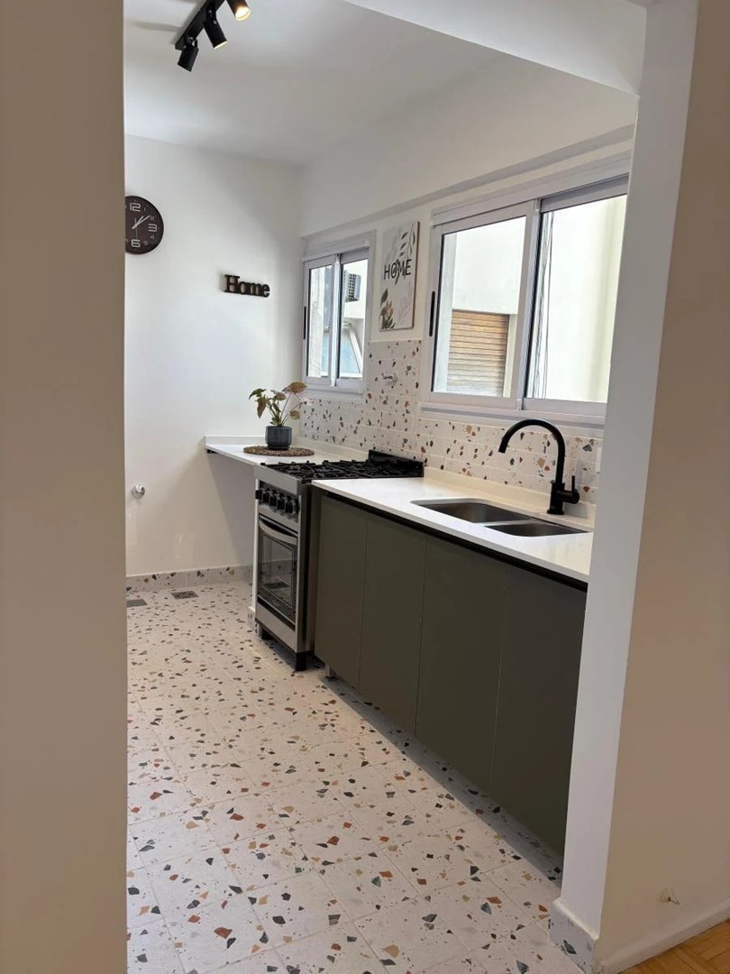 Hermoso departamento sobre Av Beiro. Todo luz y sol, completamente reciclado a nuevo. Cocina con amplios ventanales, conexión para lavarropas, espacio para heladera y horno pizzero. Living comedor con aire acondicionado frío/calor nuevo. Dos dormitorios con amplios placares empotrados y ventiladores de techo. Placard de ropa blanca en pasillo de distribución. Baño con ventilación al exterior.