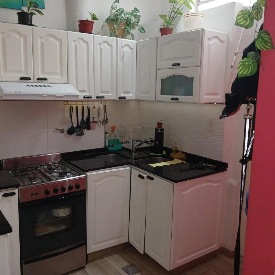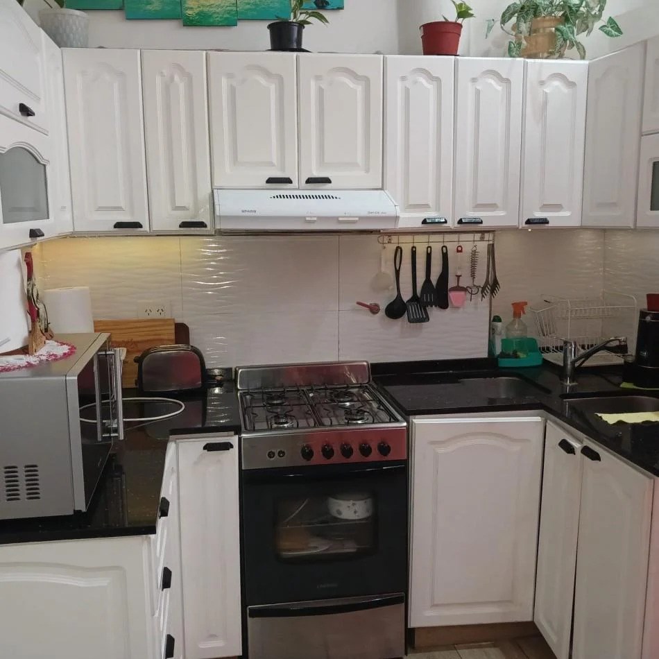 Al ingresar por la puerta principal, se nos recibe con una luminosa cocina equipada con muebles sobre y bajo mesada, perfecta para los amantes de la gastronomía. El piso de porcelanato agrega un toque de elegancia y facilita el mantenimiento.
