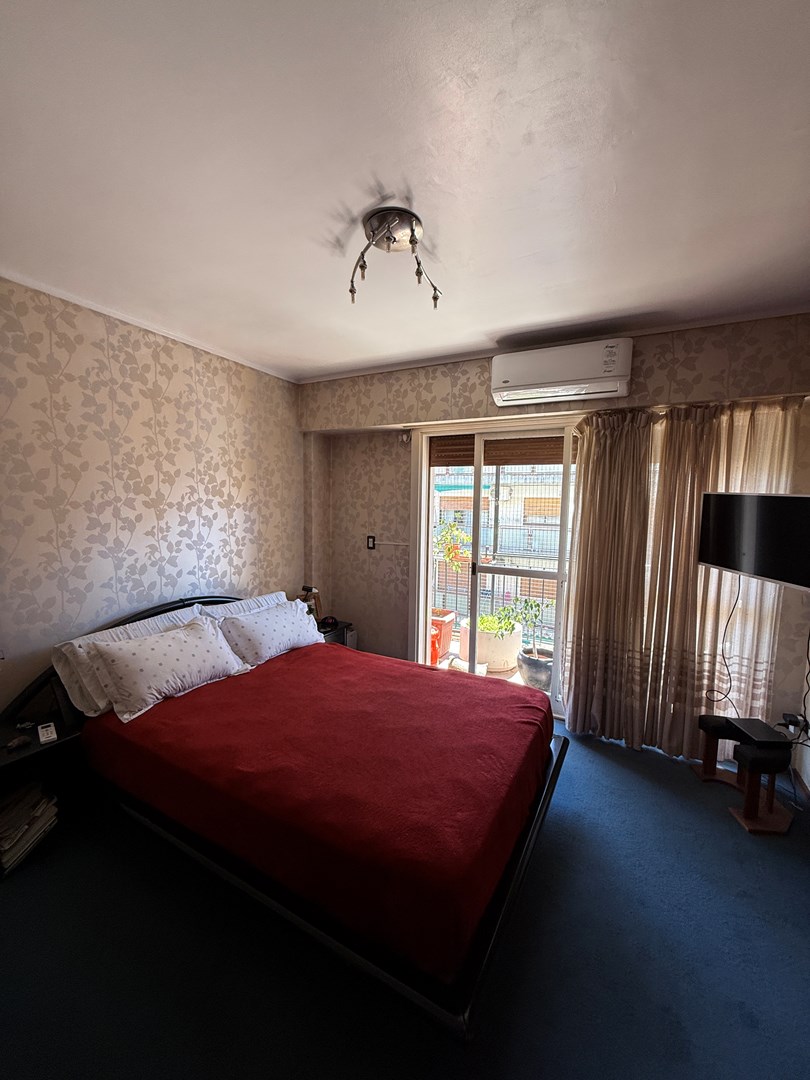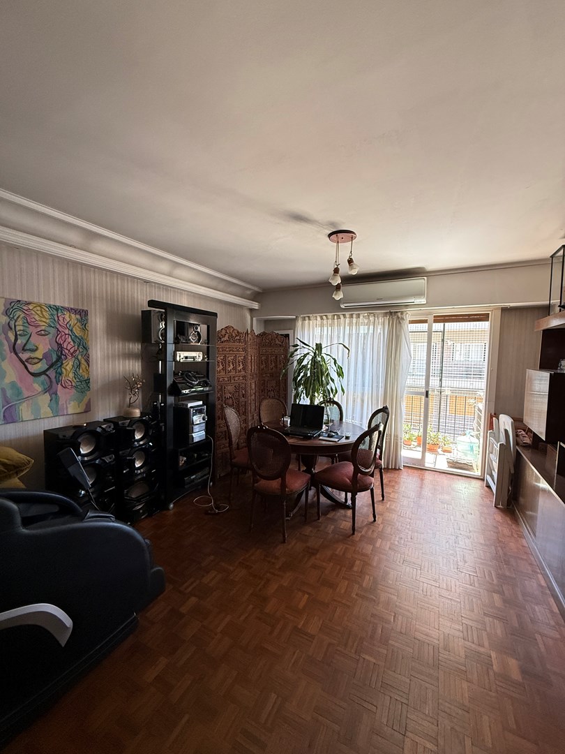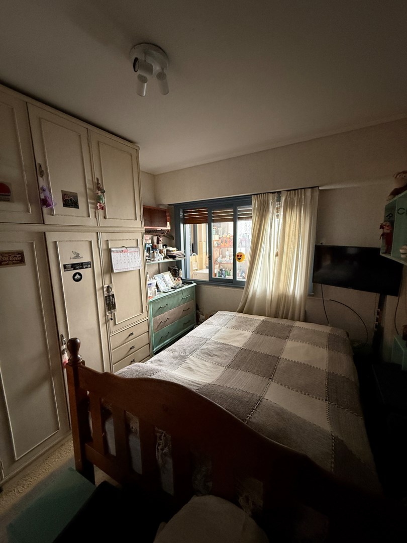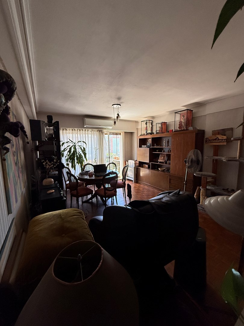 La propiedad cuenta con 105 m² cubiertos y 10 m² de balcón corrido. Posee doble ingreso: entrada principal y acceso de servicio directo a la cocina. El living es amplio y actualmente se encuentra dividido con un mueble semidivisor, lo que permite generar dos sectores bien definidos. Desde este ambiente se accede al balcón corrido, compartido con el dormitorio principal. Tanto el living como la habitación principal se orientan al frente con orientación Este, lo que garantiza excelente luminosidad natural durante gran parte del día.