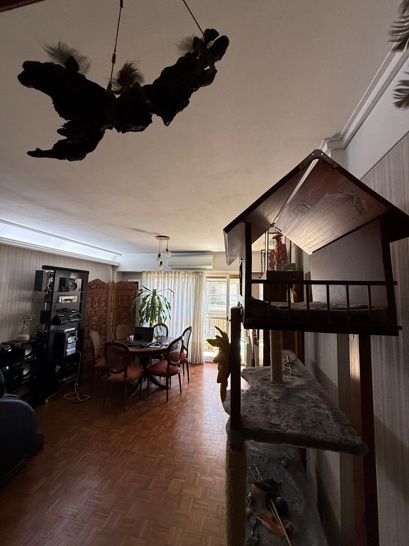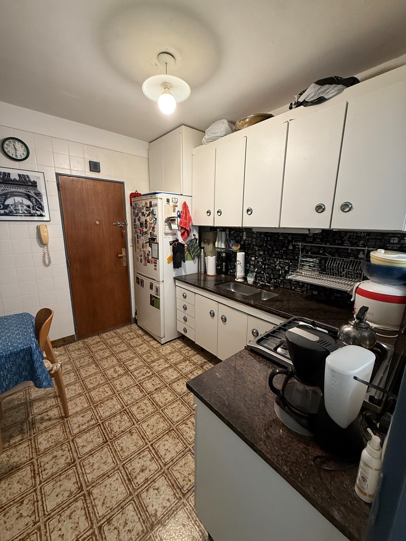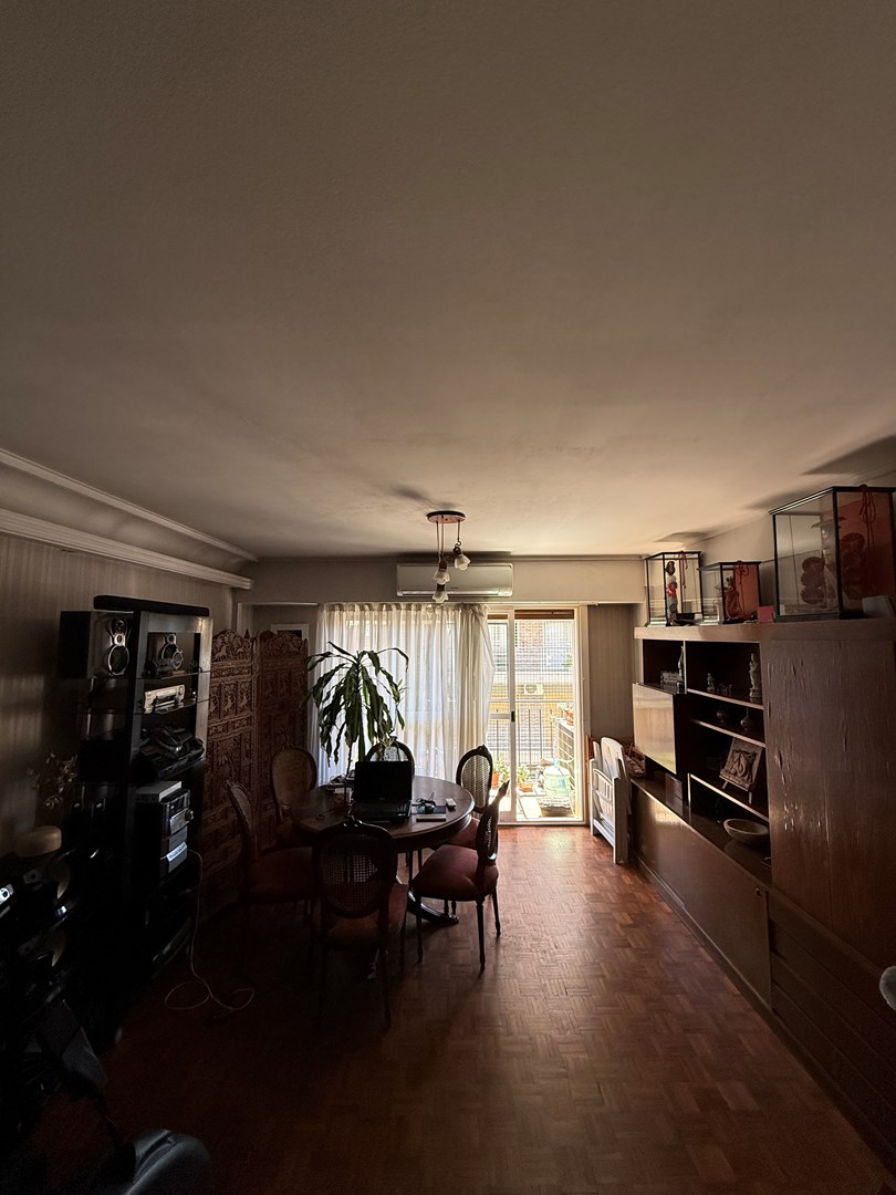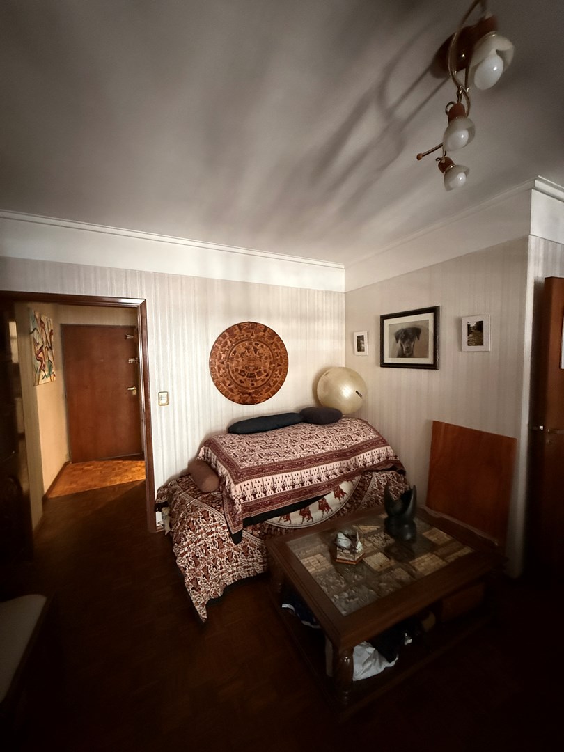 La propiedad cuenta con 105 m² cubiertos y 10 m² de balcón corrido. Posee doble ingreso: entrada principal y acceso de servicio directo a la cocina. El living es amplio y actualmente se encuentra dividido con un mueble semidivisor, lo que permite generar dos sectores bien definidos. Desde este ambiente se accede al balcón corrido, compartido con el dormitorio principal. Tanto el living como la habitación principal se orientan al frente con orientación Este, lo que garantiza excelente luminosidad natural durante gran parte del día.