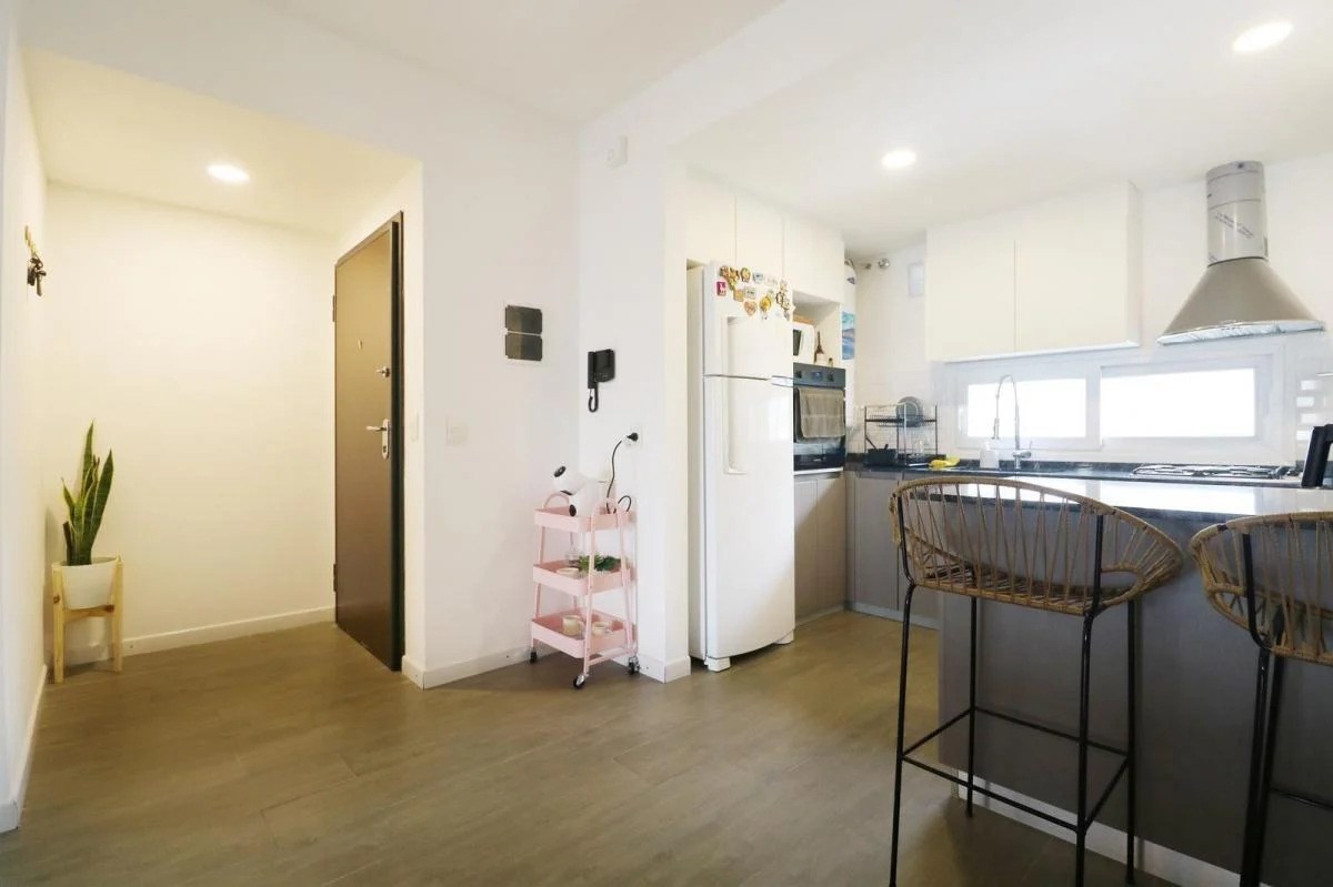 Con 56 m² totales, se destaca por su distribución moderna y luminosidad natural: un amplio living-comedor integrado con cocina que permite disfrutar del espacio social sin barreras, un toilette de recepción para mayor confort y un dormitorio en suite con placard completo que garantiza privacidad y comodidad.