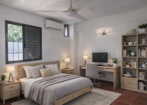 Living-comedor amplio, con pisos cerámicos y ventilación natural.