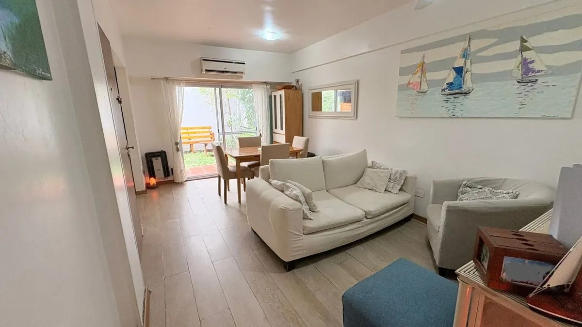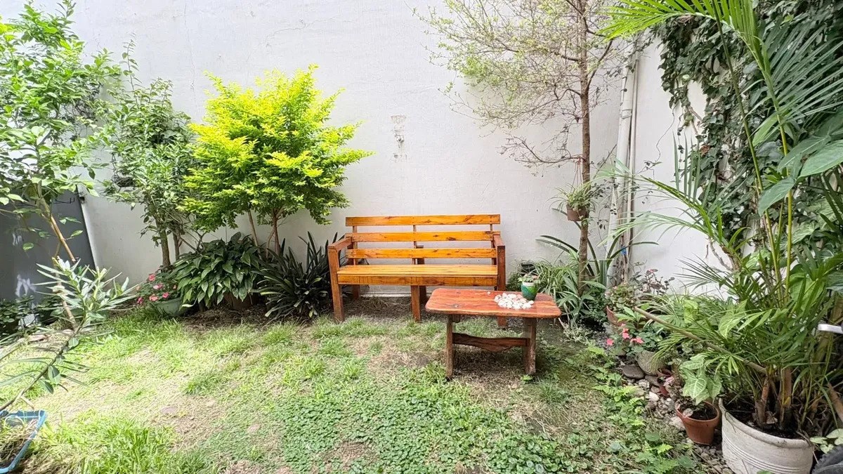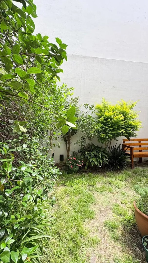 El jardín es amplio y con abundante vegetación, ideal para disfrutar del aire libre en un entorno tranquilo. El departamento tiene un baño completo, una habitación principal con placard empotrado y baulera, y una segunda habitación con gran ventanal al patio trasero. Ambas habitaciones cuentan con piso flotante recién instalado.