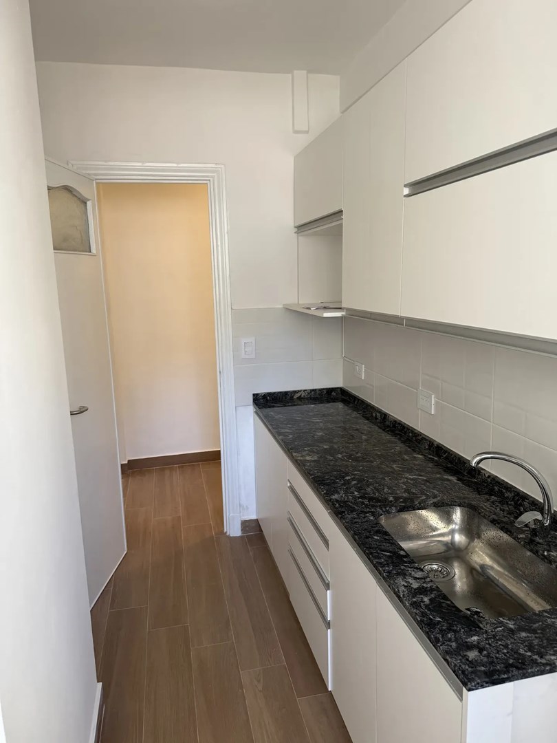 La unidad dispone de un living comedor amplio y muy luminoso, con techos altos que aportan mayor sensación de amplitud. La cocina es independiente, completamente renovada, con muebles a medida y excelente espacio de guardado. Cuenta además con lavadero separado.