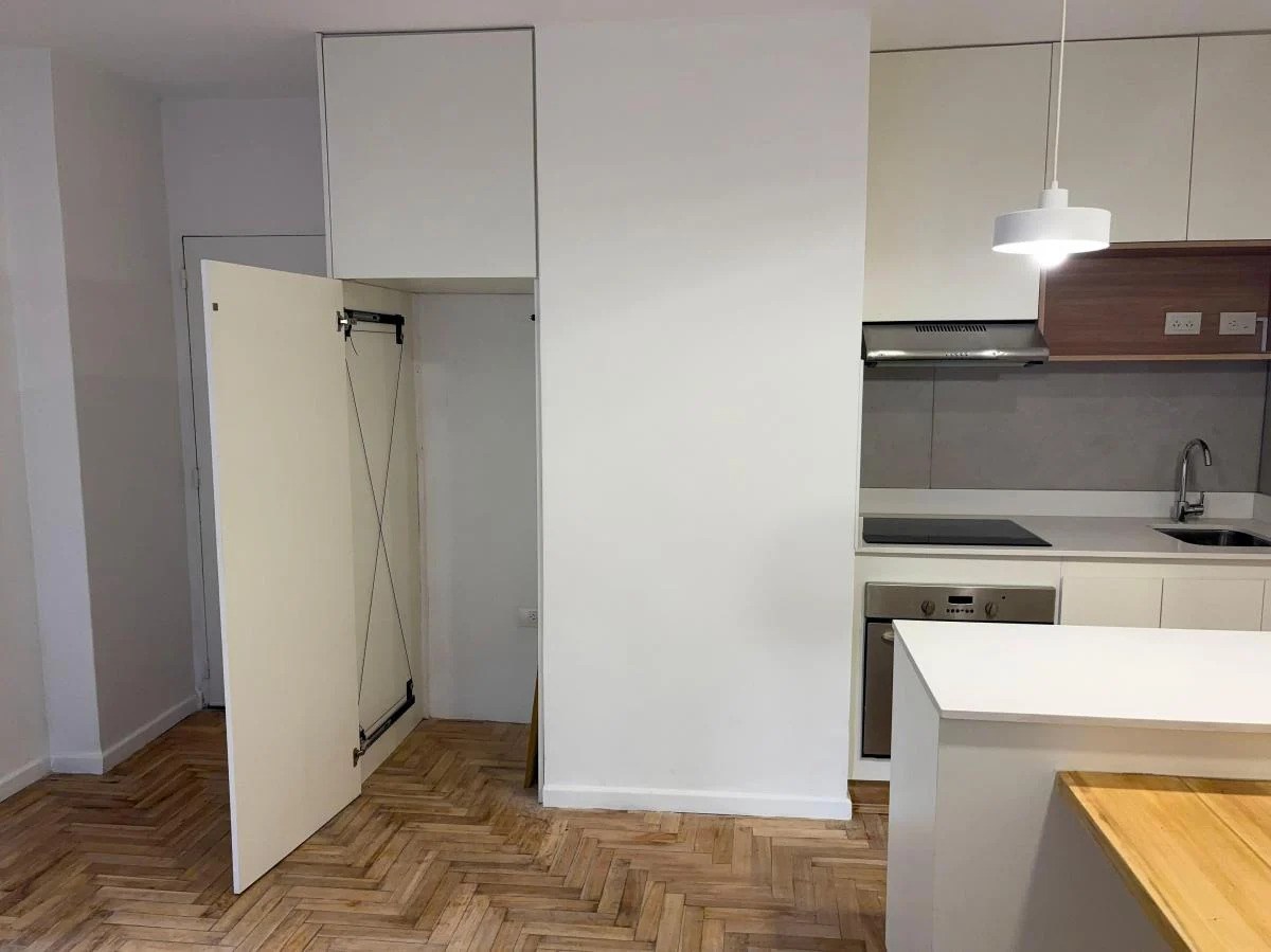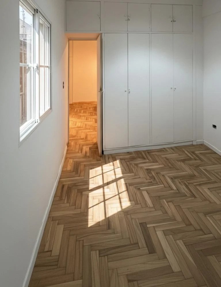 4- Living y Dormitorio: Destacan sus pisos de parquet originales en espiga, restaurados a nuevo, que aportan la calidez clásica de Recoleta.. El dormitorio cuenta con amplio placard.
