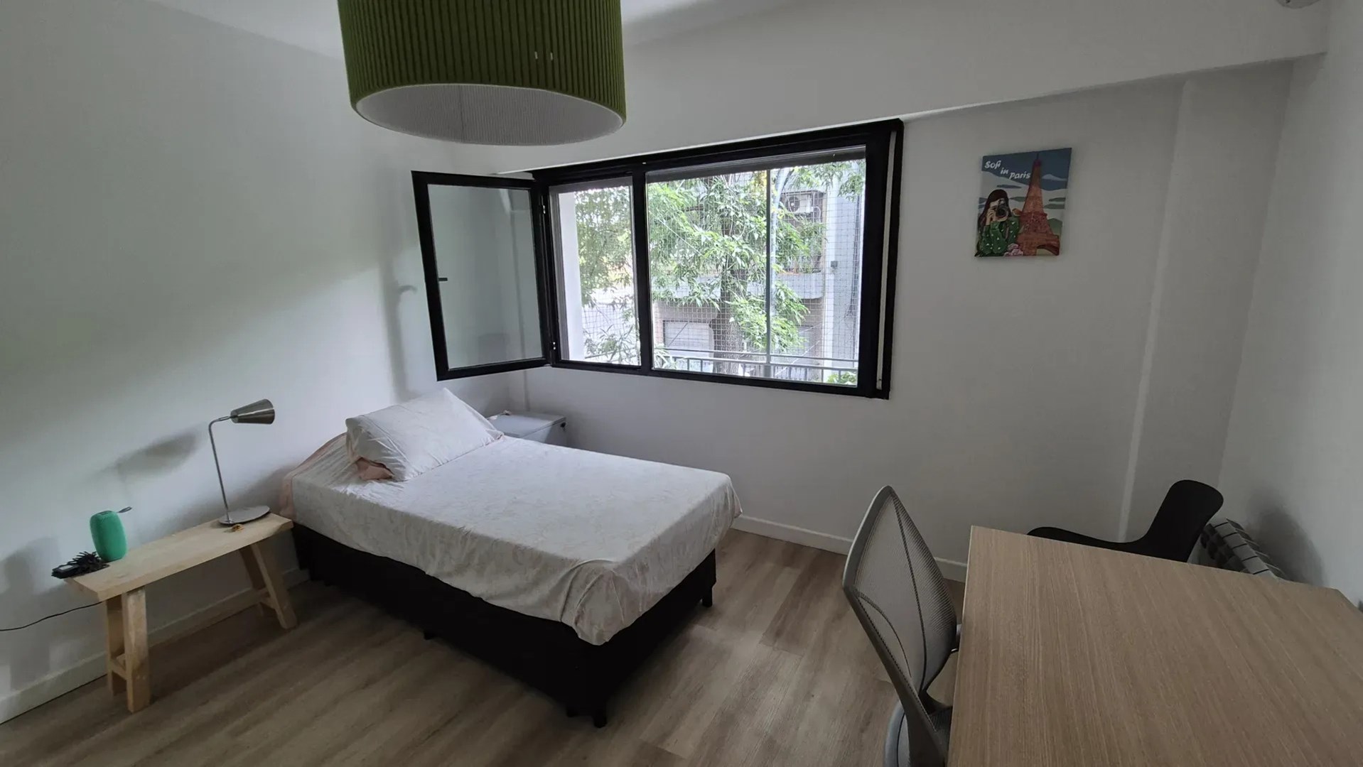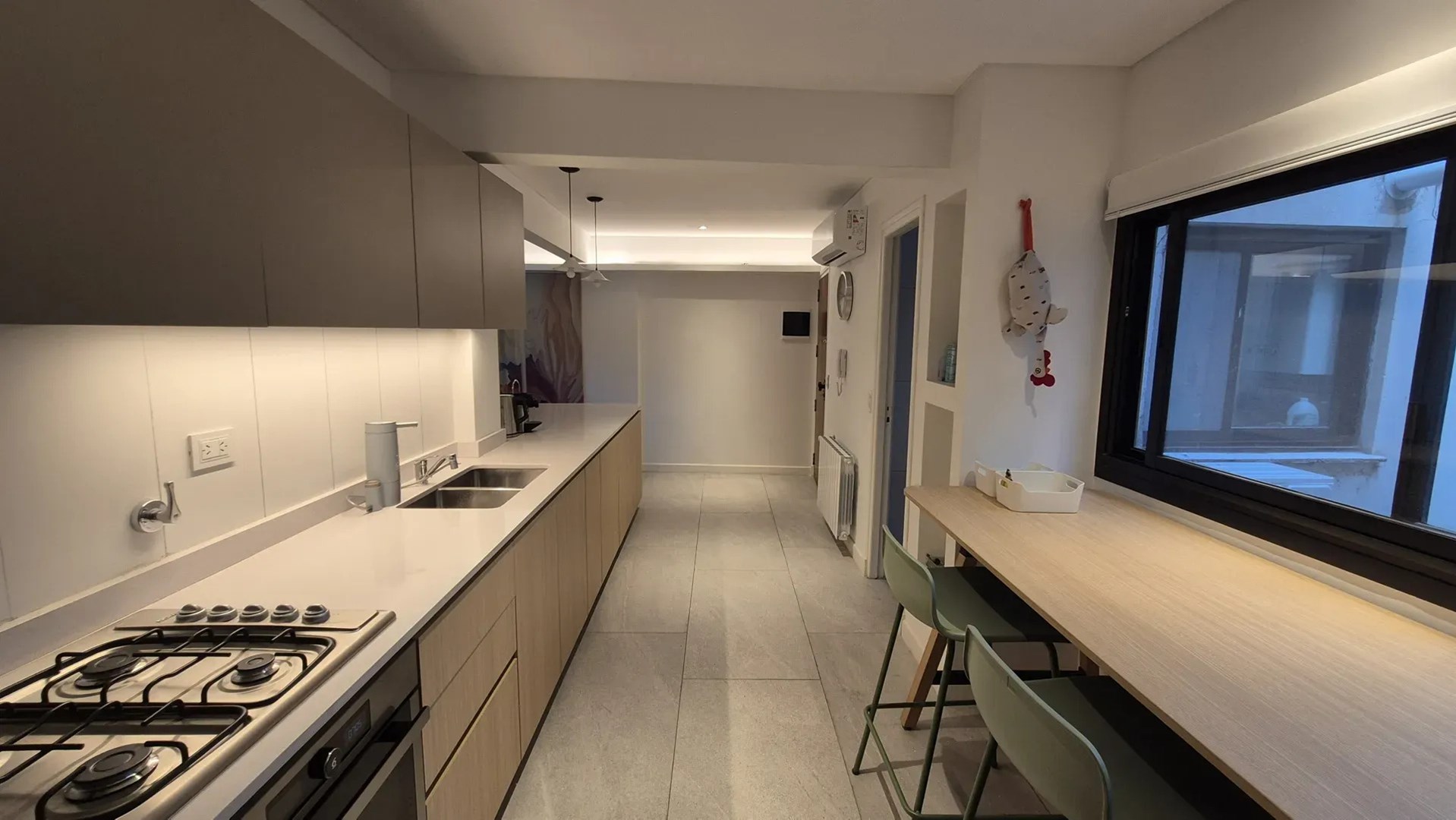 La propiedad cuenta con cuatro dormitorios y dos baños, con ambientes bien definidos para el descanso y la vida diaria. El living comedor dispone de grandes ventanales con vista al entorno arbolado y salida a un balcón corrido rodeado de vegetación, ideal para incorporar plantas y mobiliario exterior. La cocina es independiente, integrada de manera contemporánea al área pública, de generosas dimensiones y equipada con muebles bajo y sobre mesada, horno, anafe y barra desayunadora junto a una ventana. Posee lavadero separado con ventilación propia.