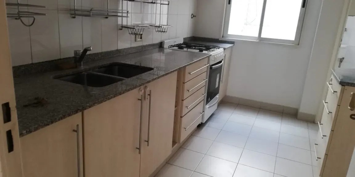 Baño completo y amplísima cocina con gran espacio de guardado, lavadero independiente.
