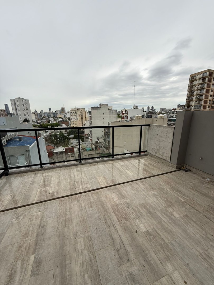 Amplio estudio/monoambiente con cocina integrada, baño completo y un hermoso balcón aterrazado.